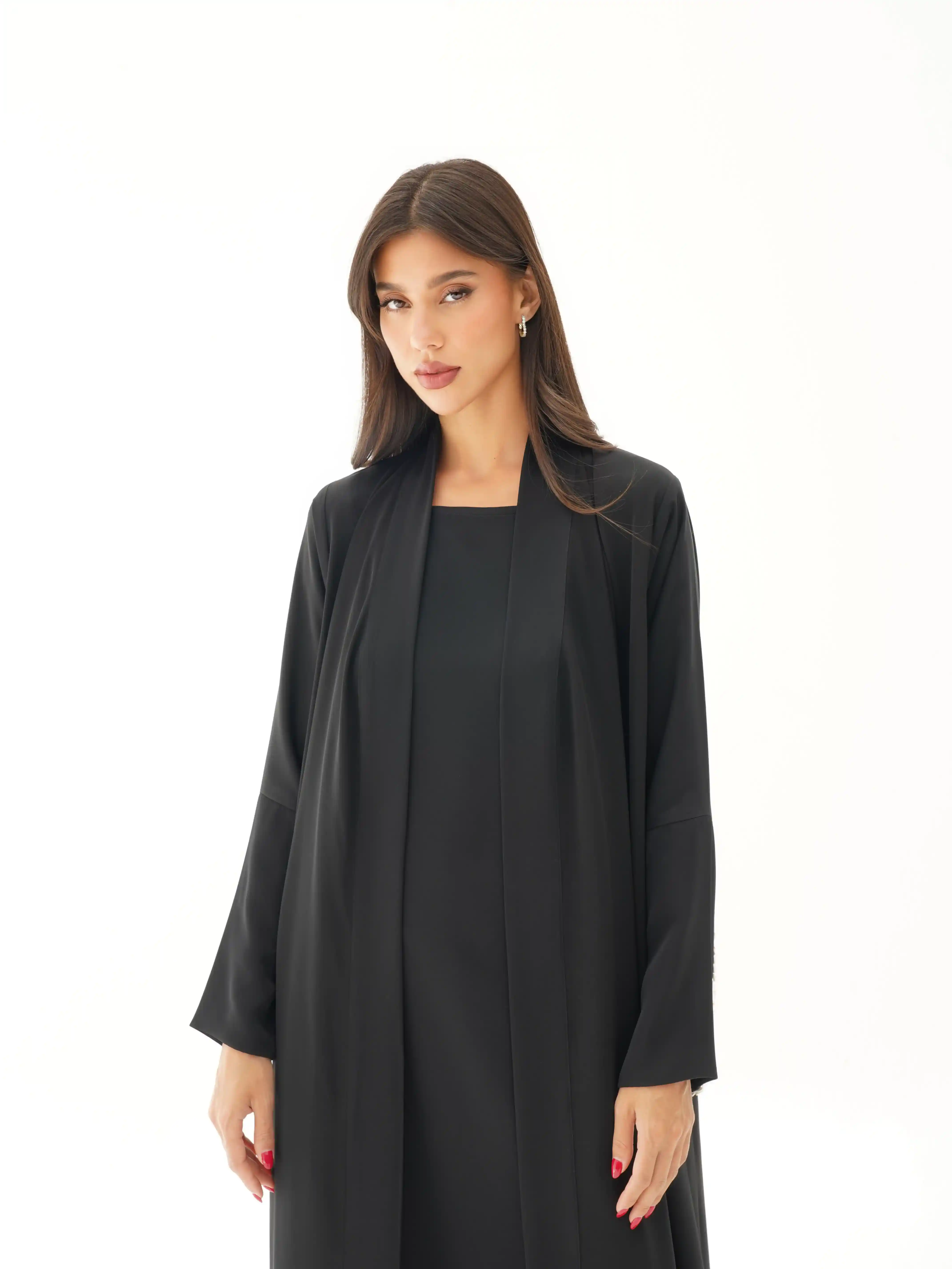 • اللون اسود كامل قماش العباية.