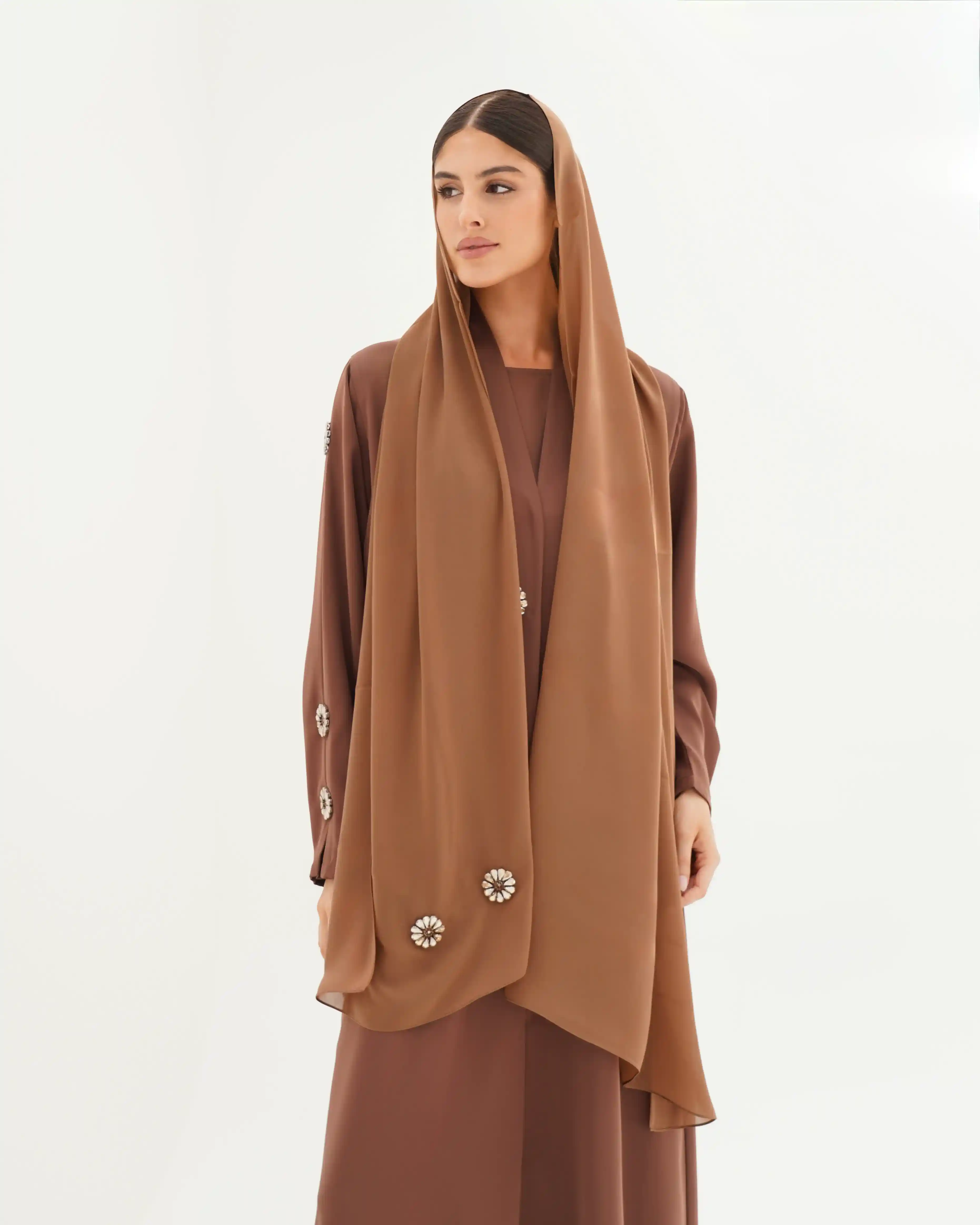 • لون كراميل كامل العباية مع كرستال باللون كراميل.
