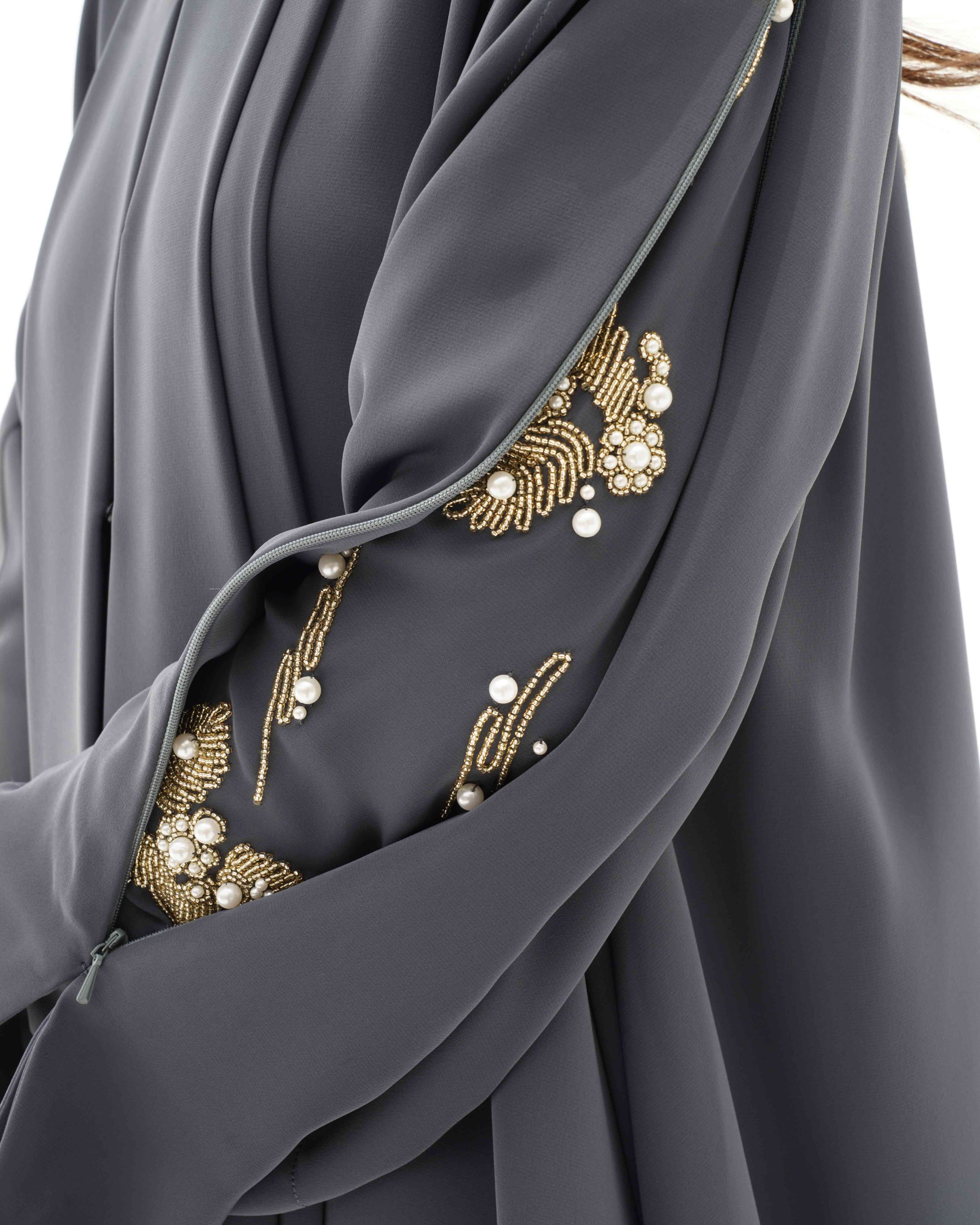 • اللون رمادي كامل العباية عند اغلاق السحاب.