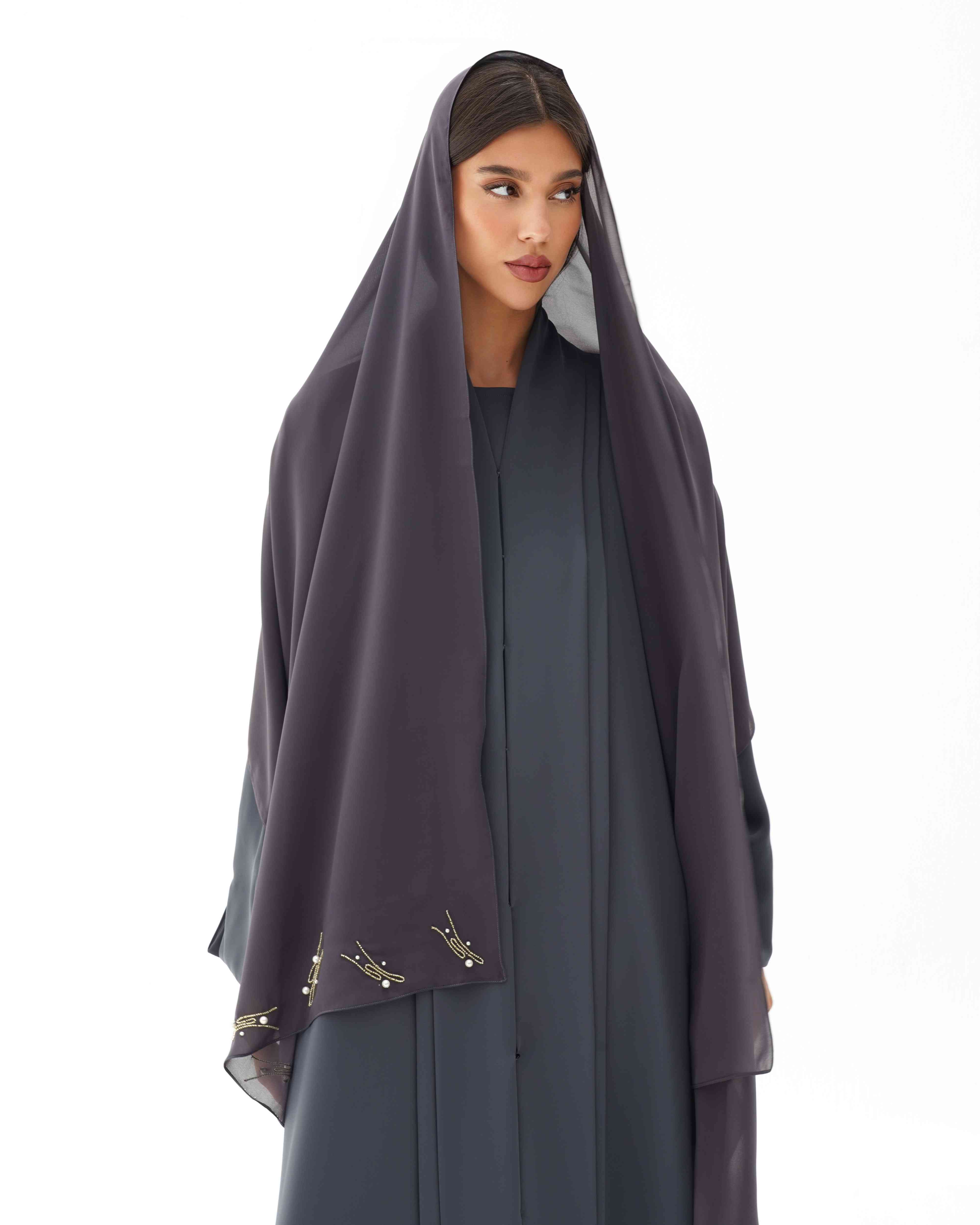 • قماش الطرحة ليزر بتأثير تقلمي خغيف ووزن مثالي لثباتها وبنفس لون العباية.