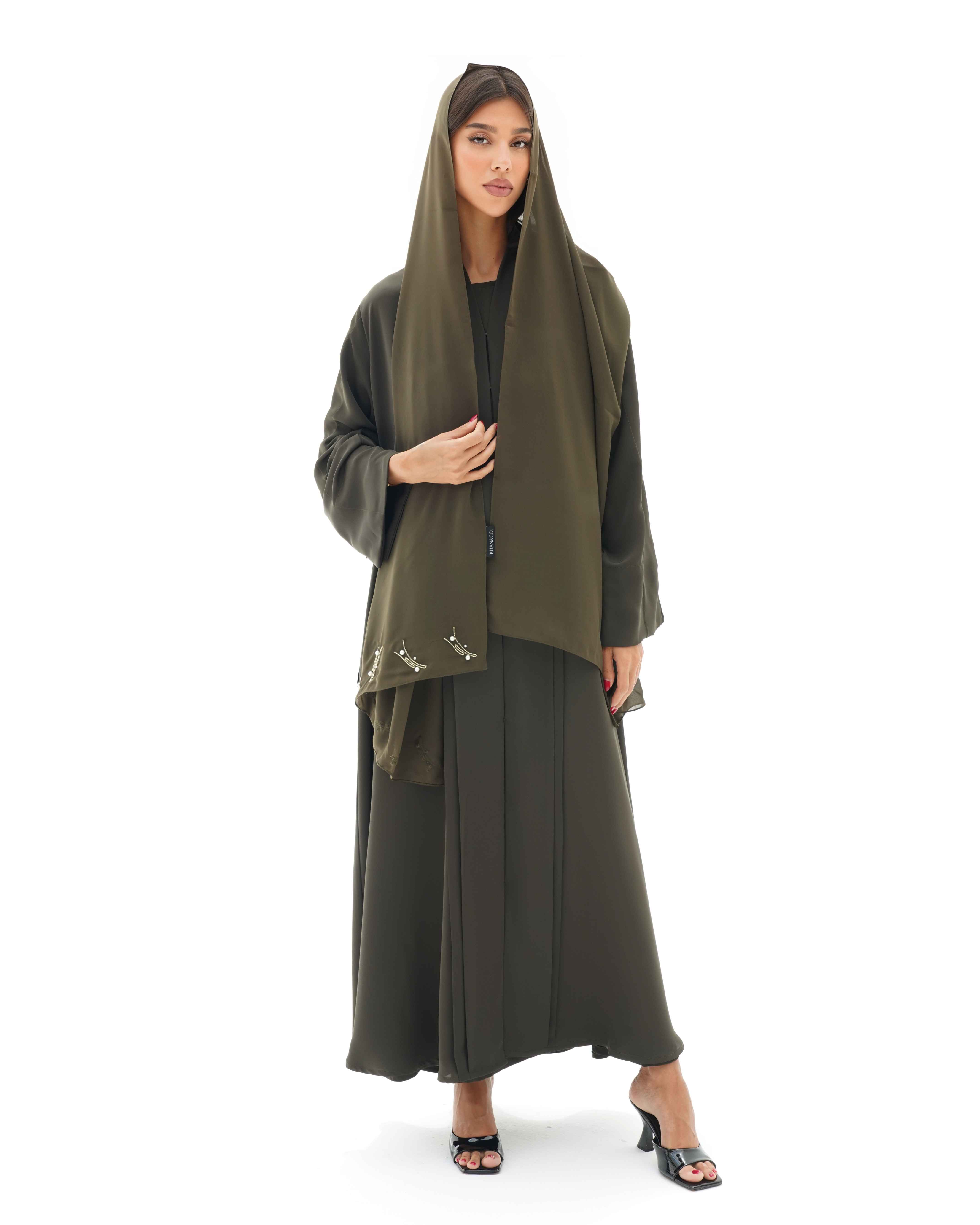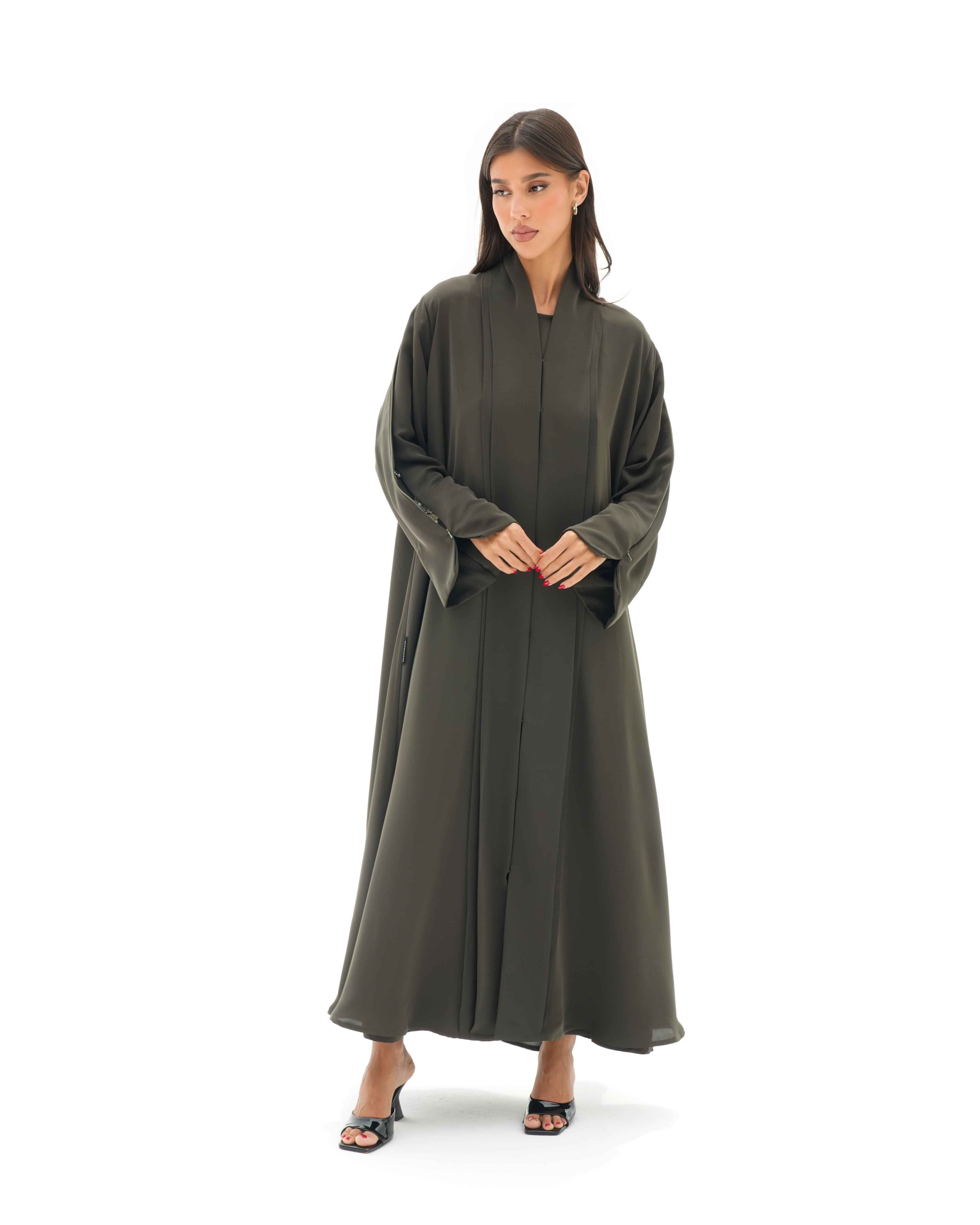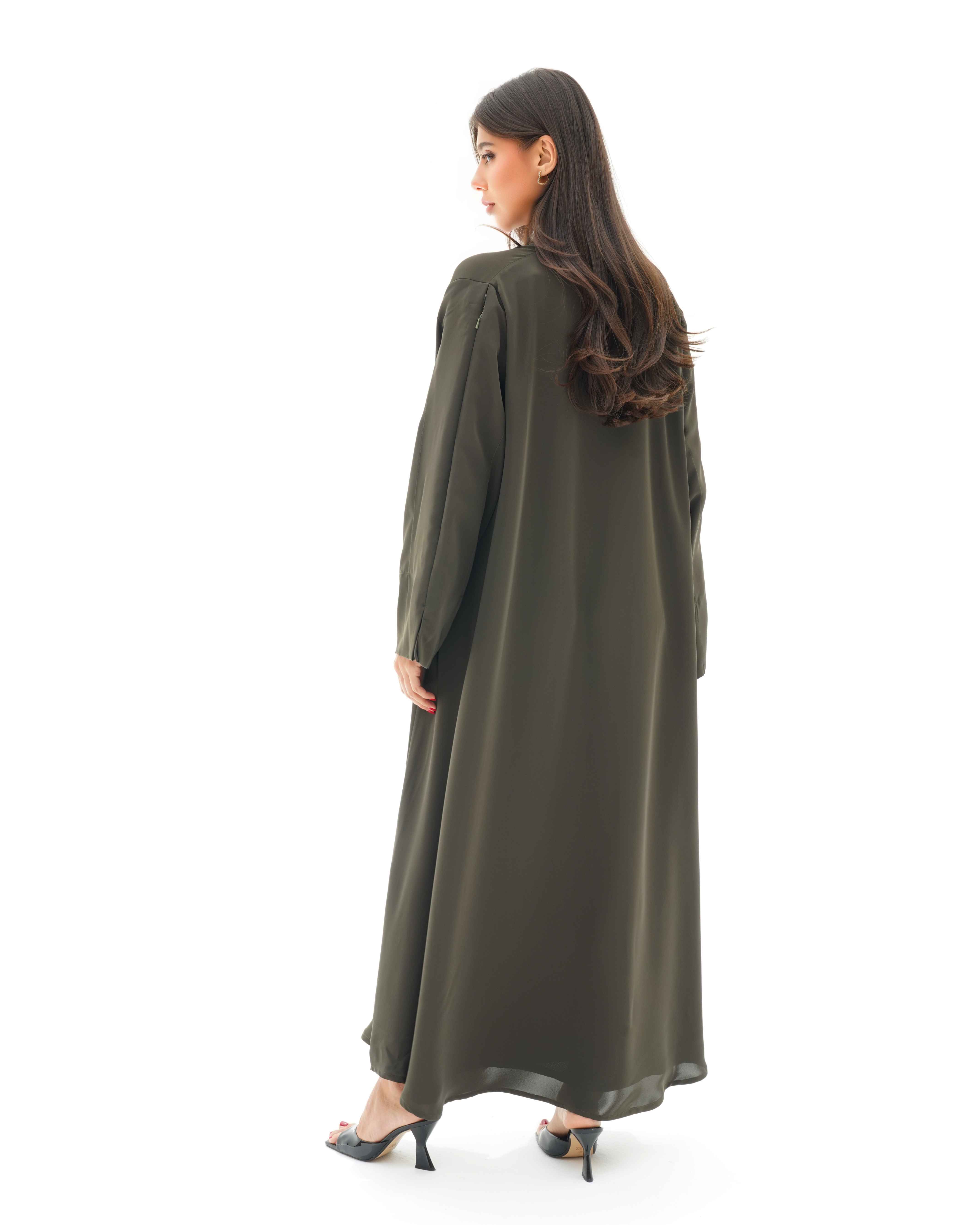 • اللون أخضر زيتوني كامل العباية عند اغلاق السحاب.
