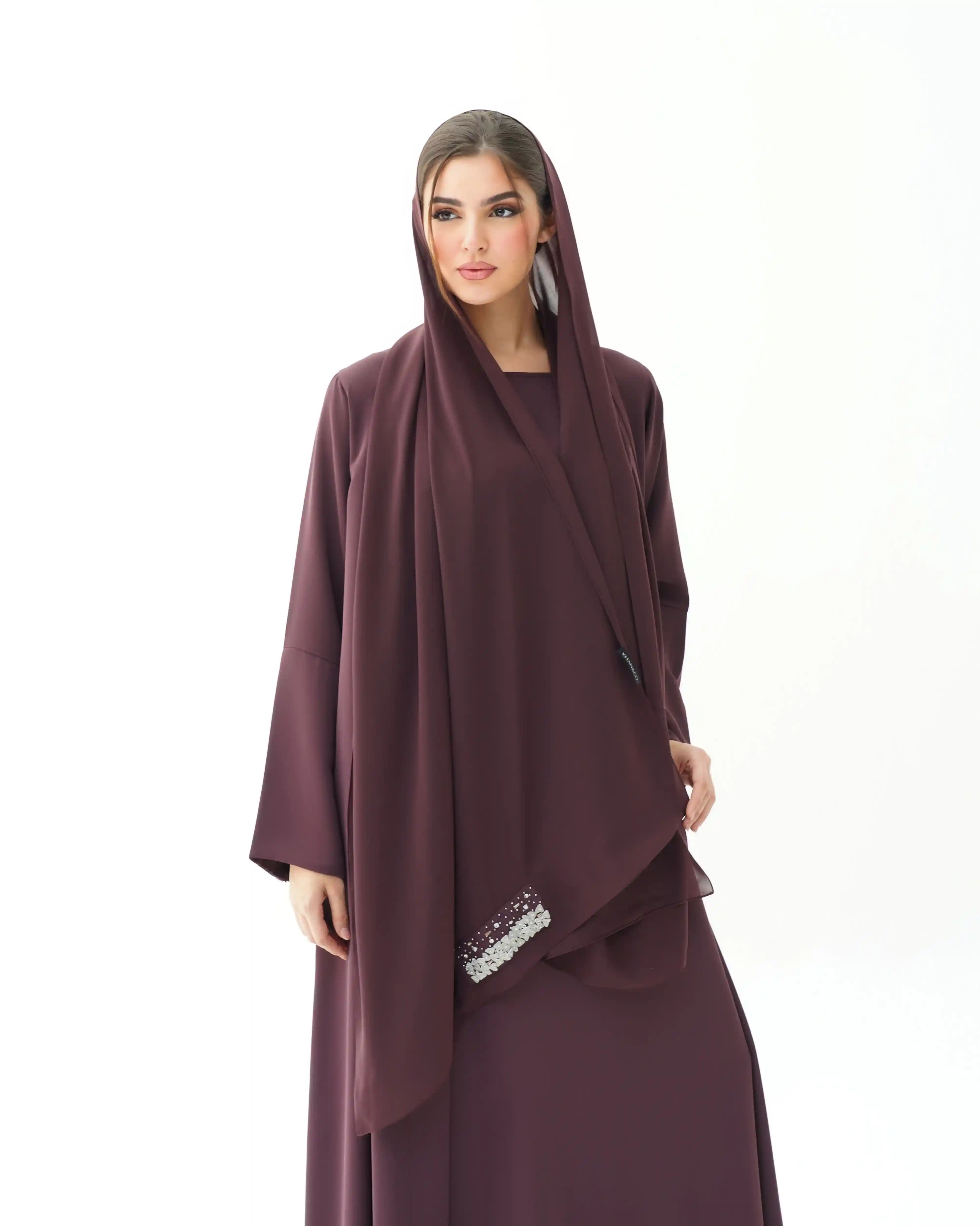 • طرحة مع العباية مطرزة بالقلتر والخزر والكريستال بطرف الطرحة.