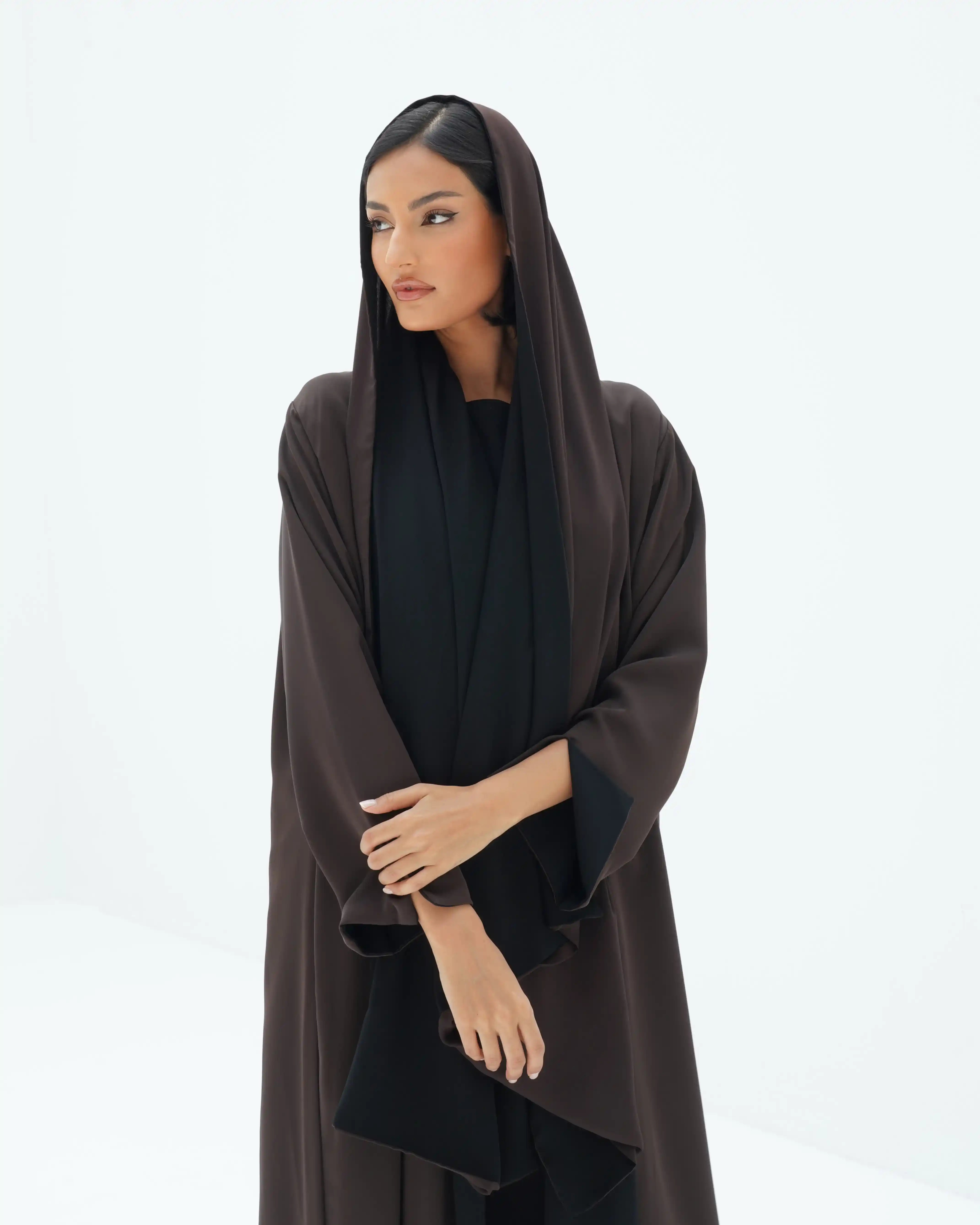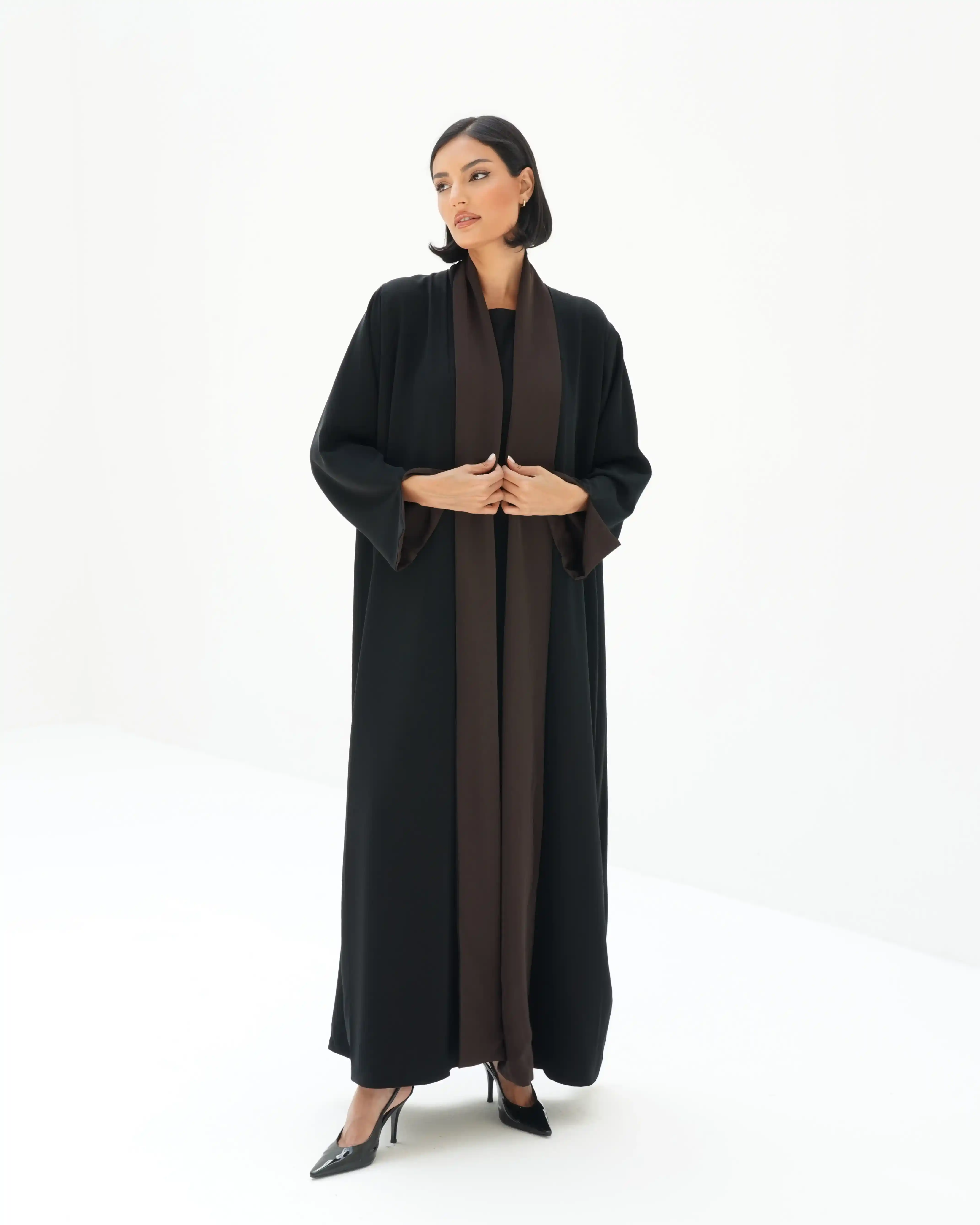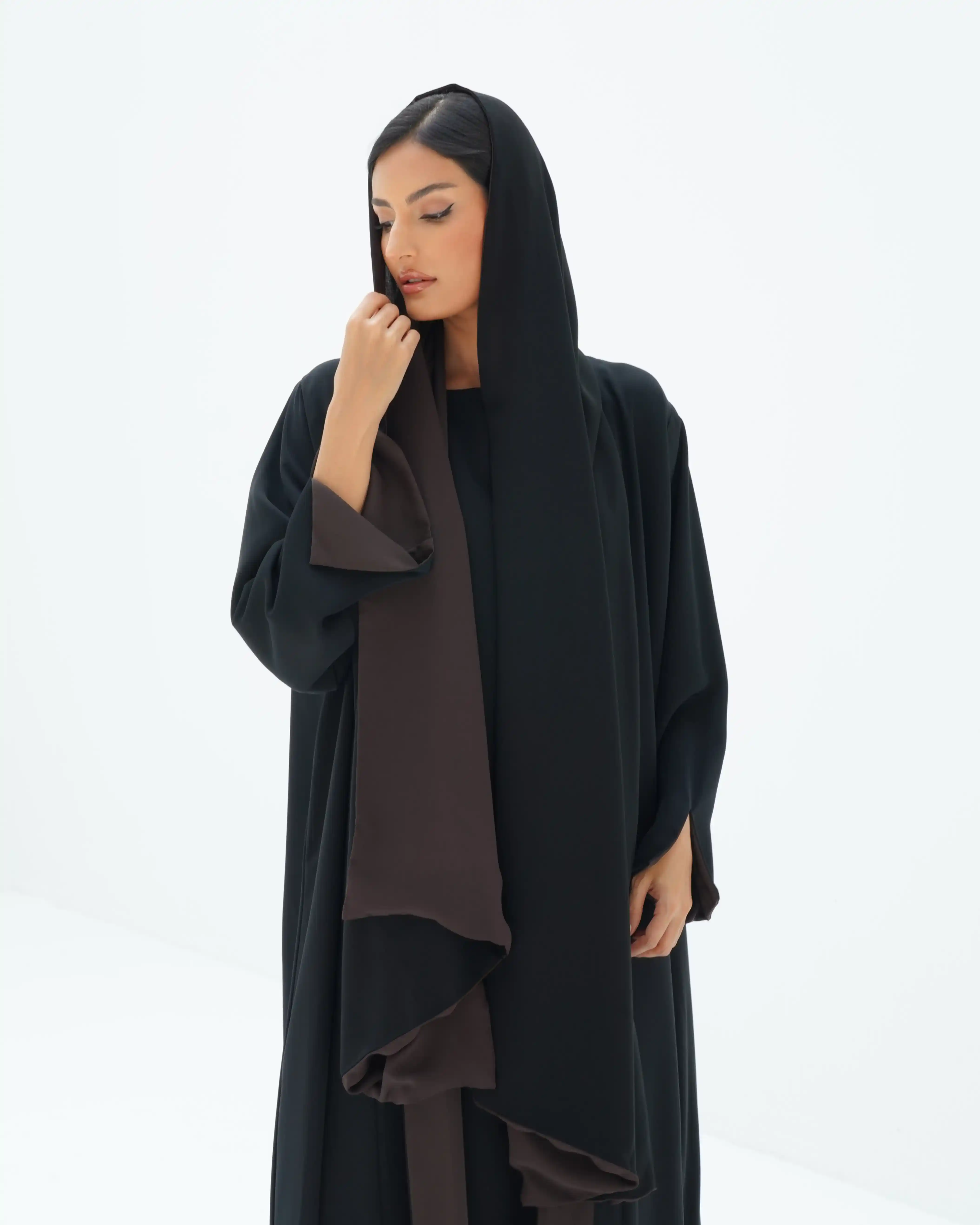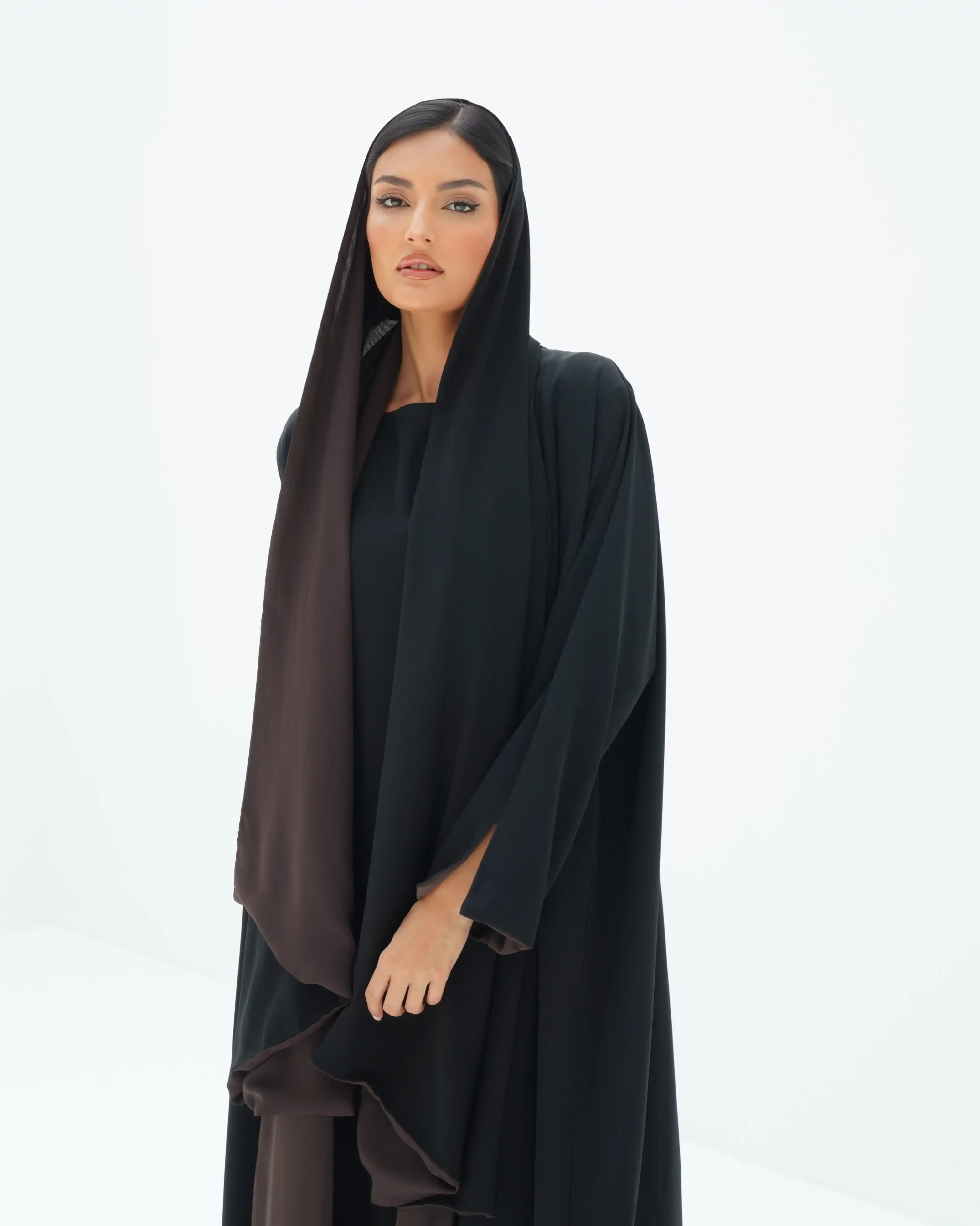 • عباية دبل فيس وجهين وجه باللون الاسود ووجه باللون شوكولاته.
