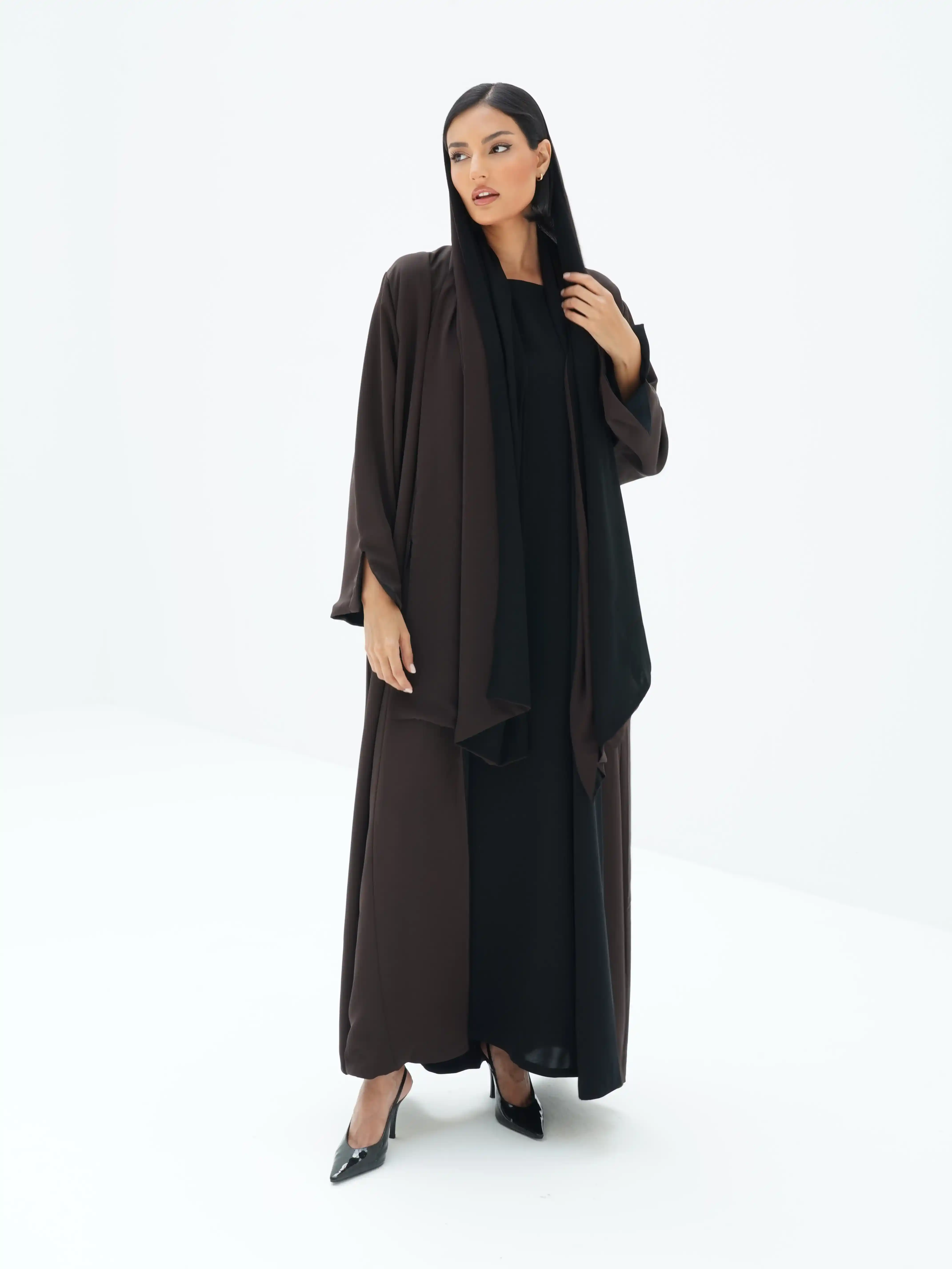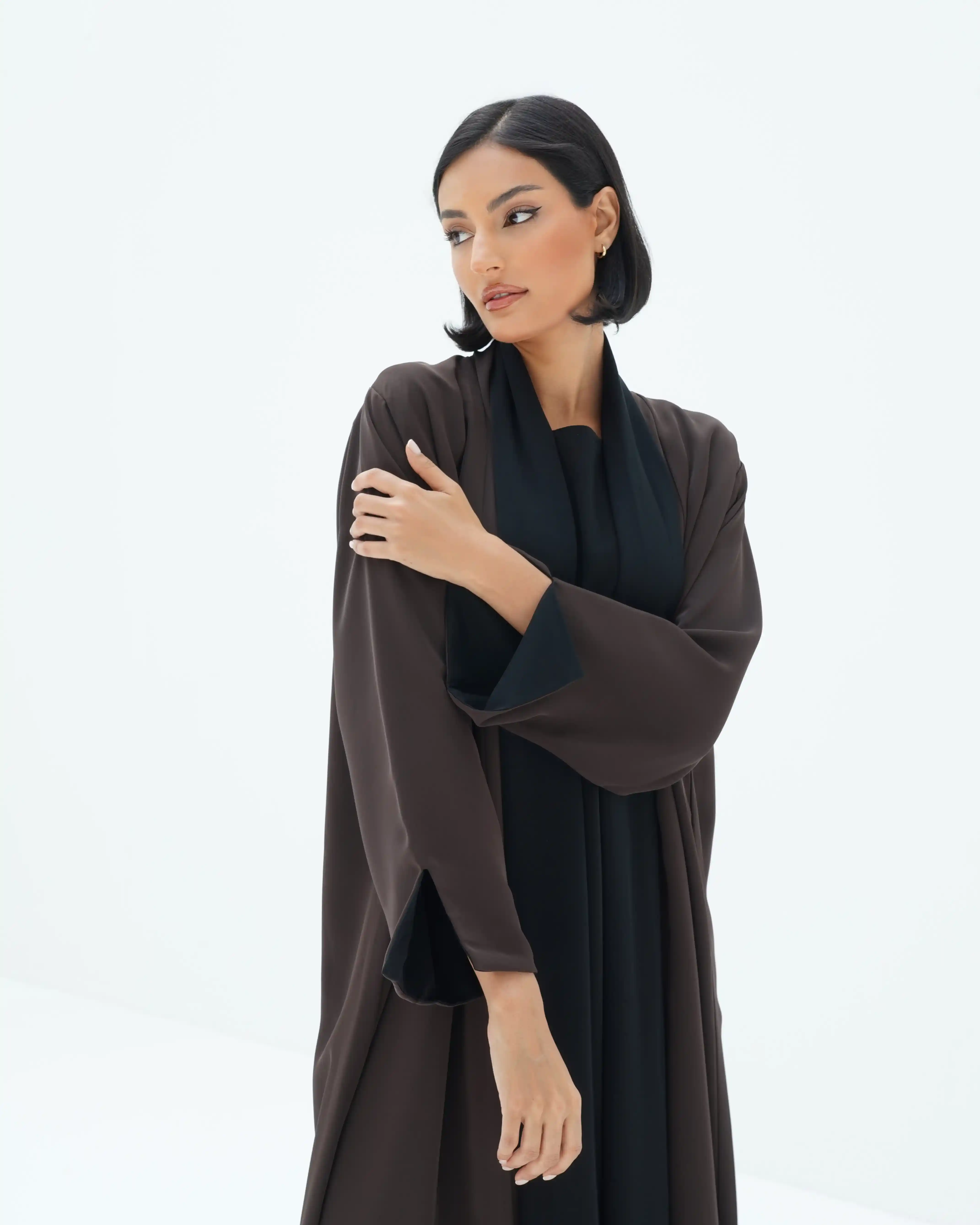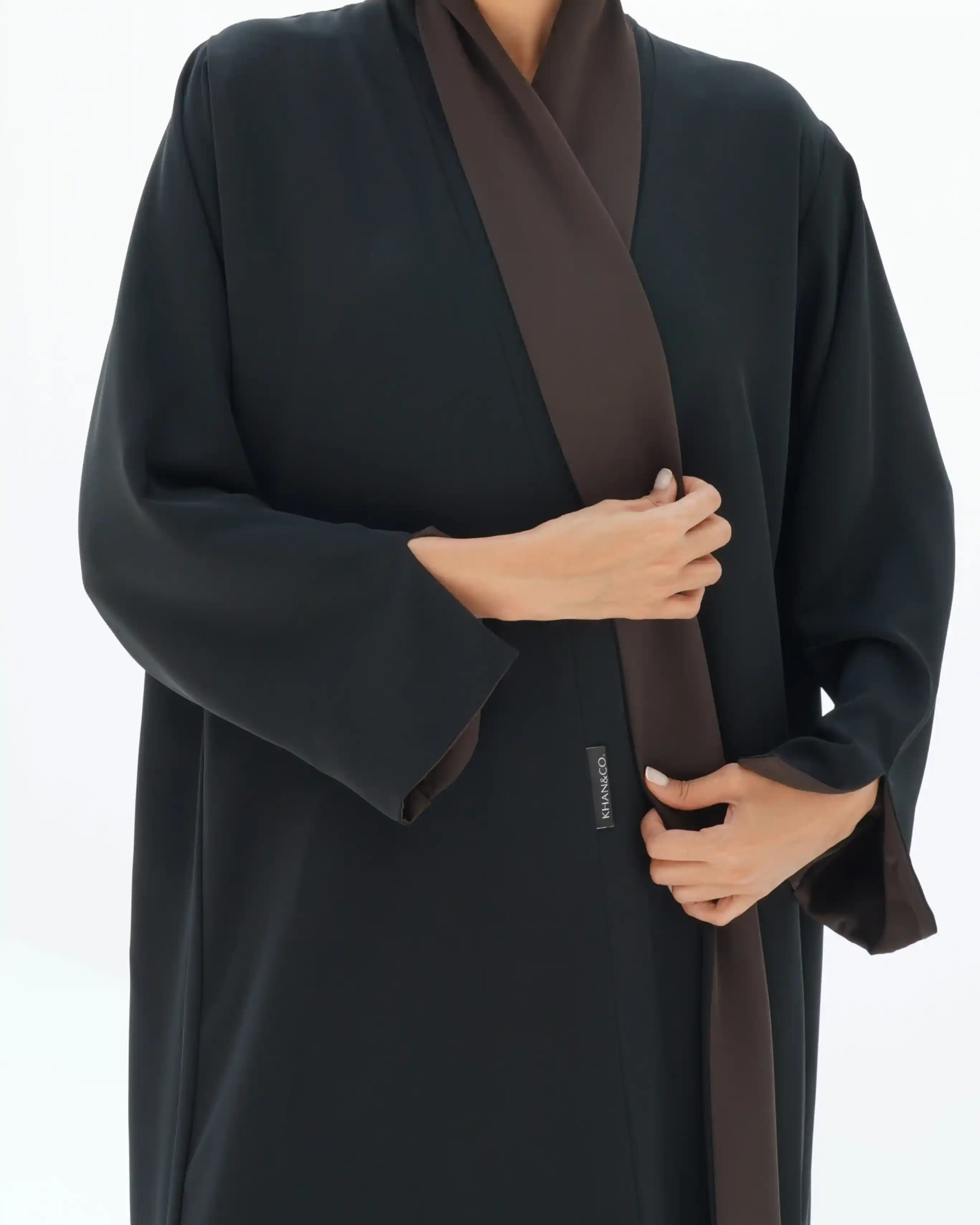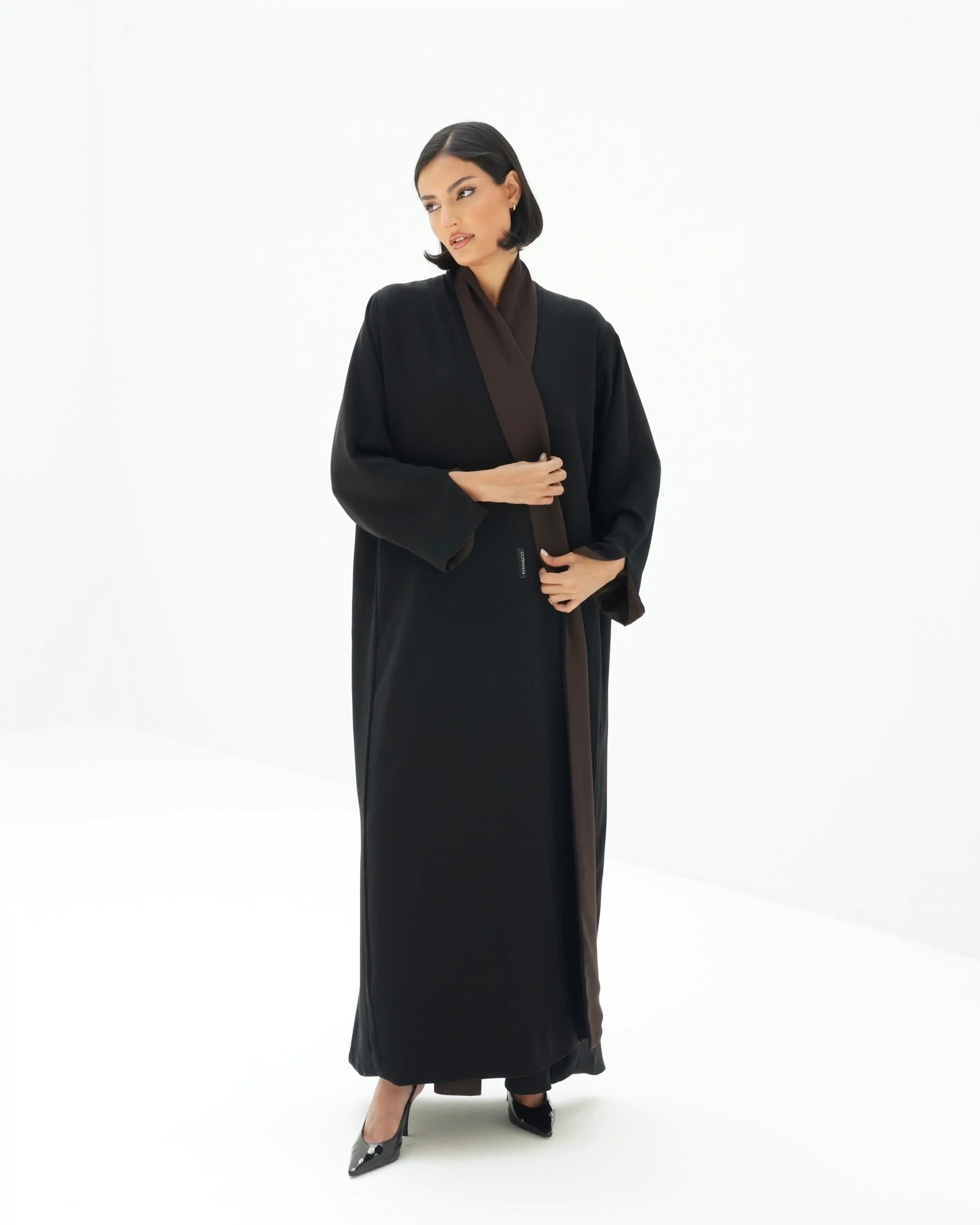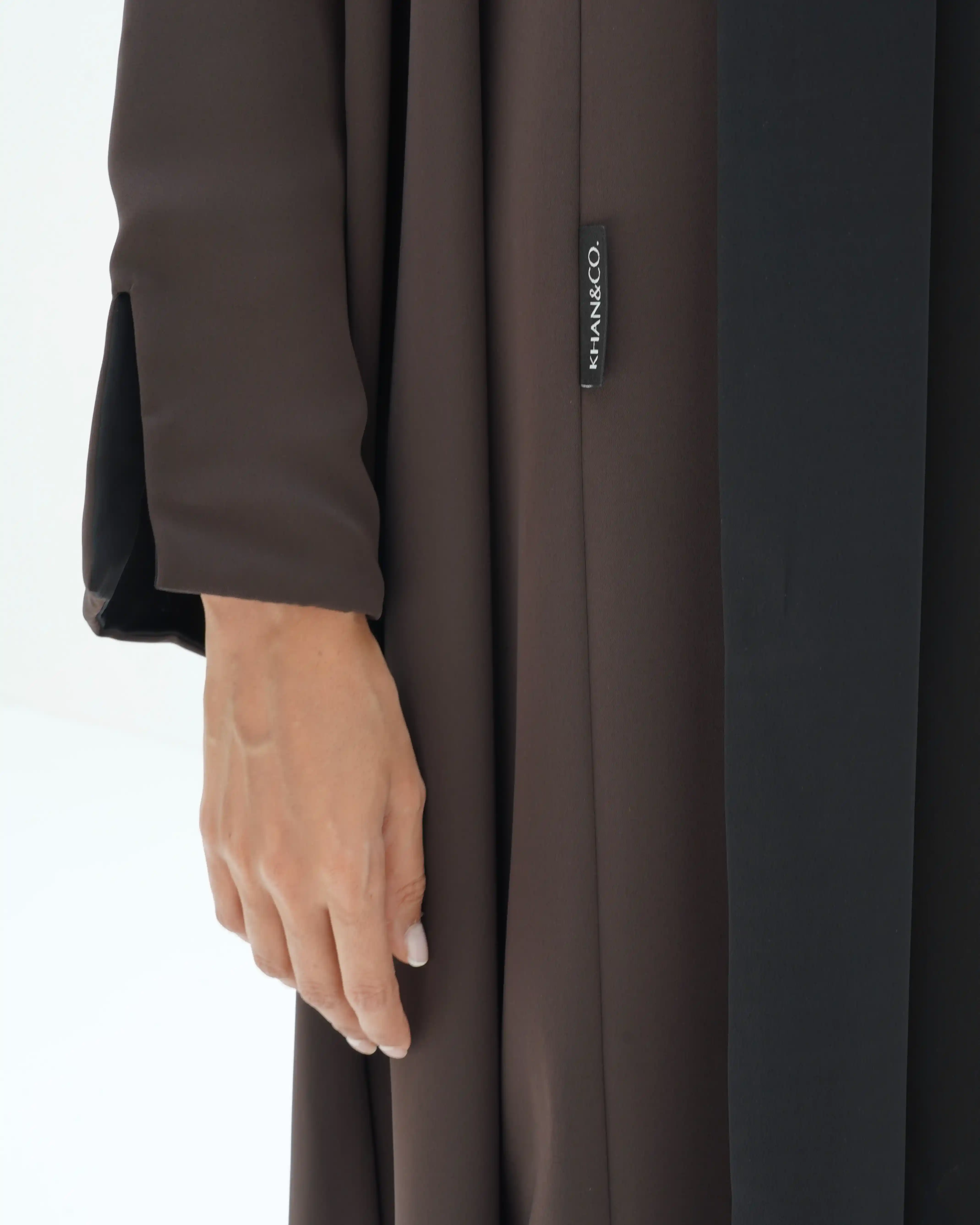 • عباية دبل فيس وجهين وجه باللون الاسود ووجه باللون شوكولاته.