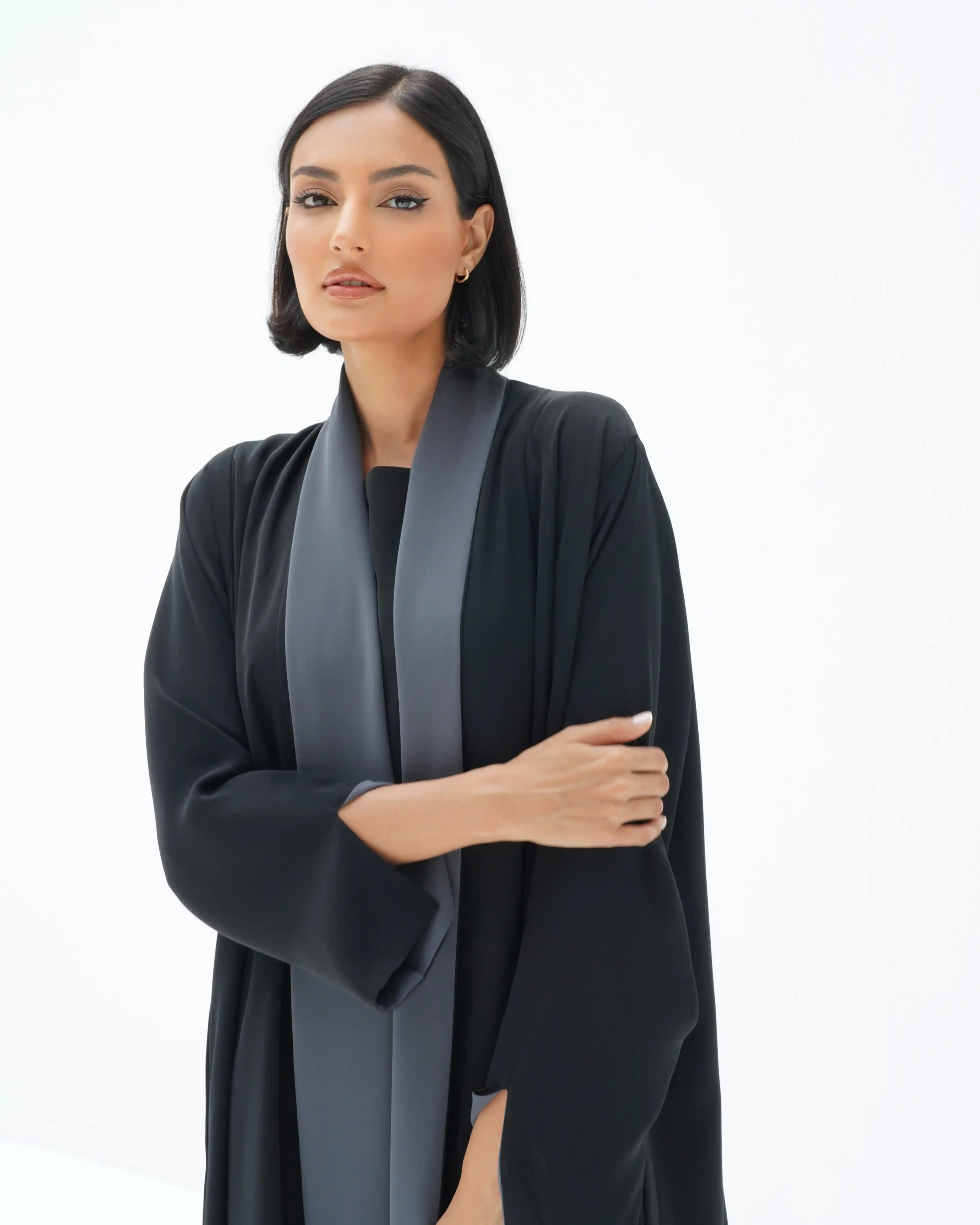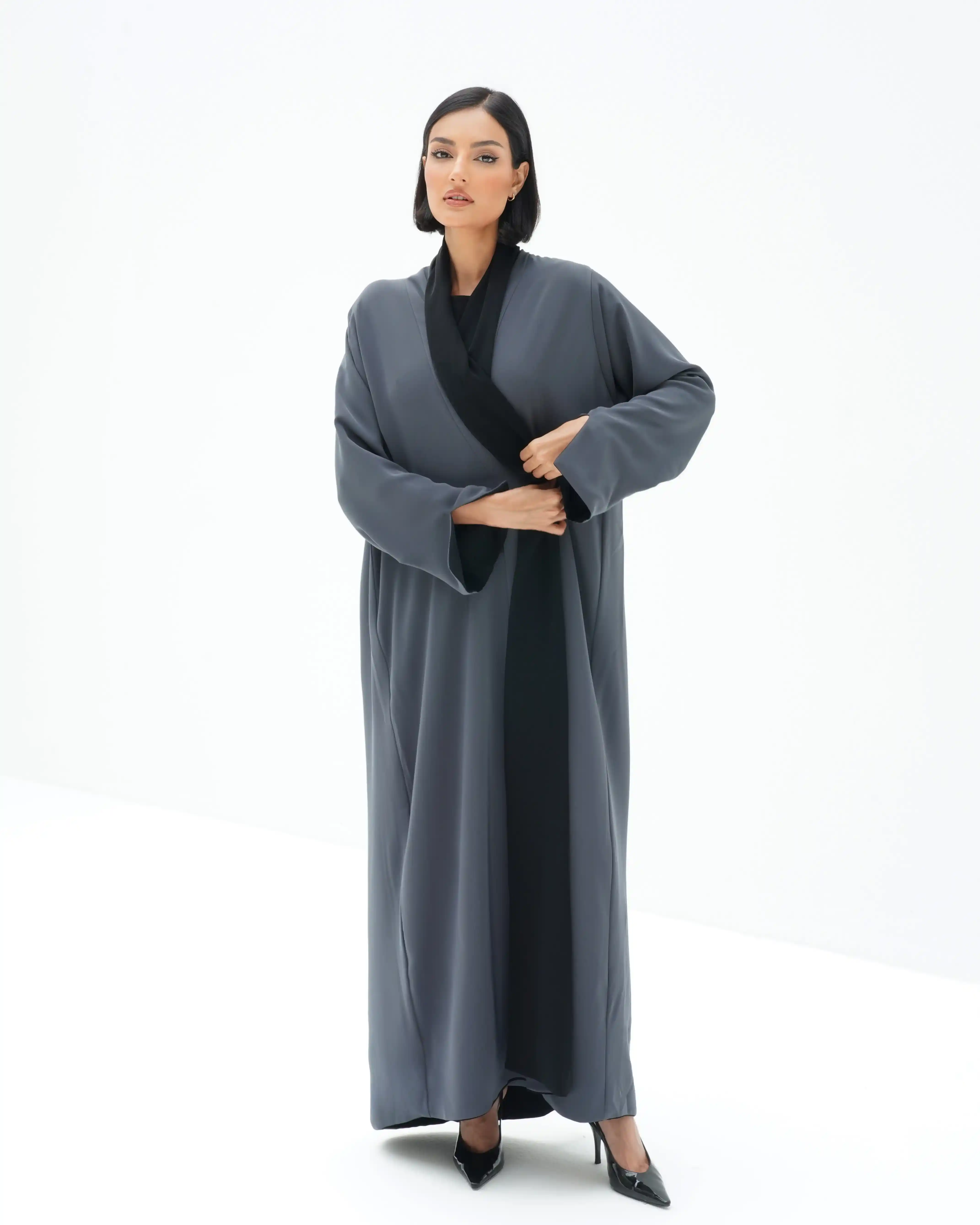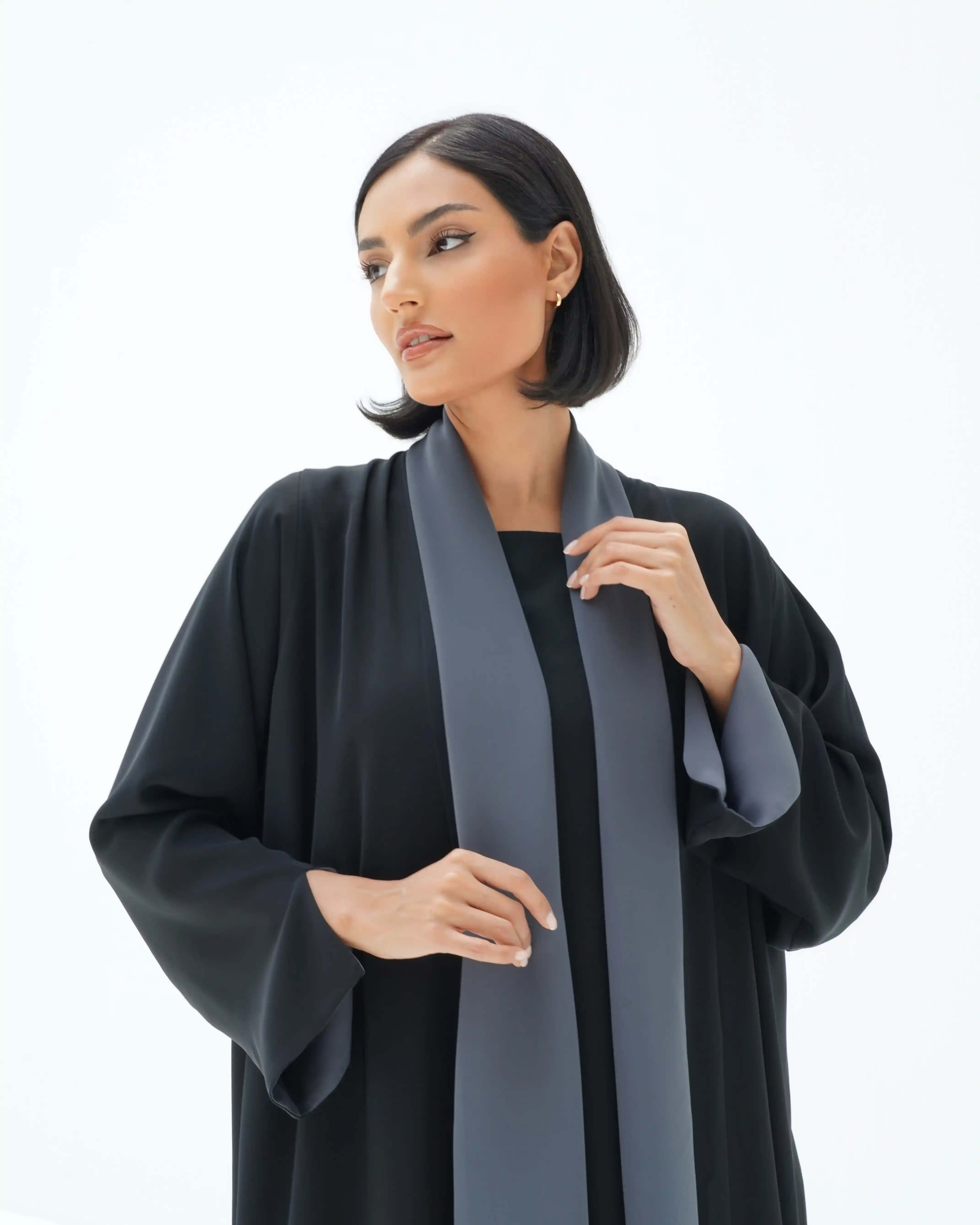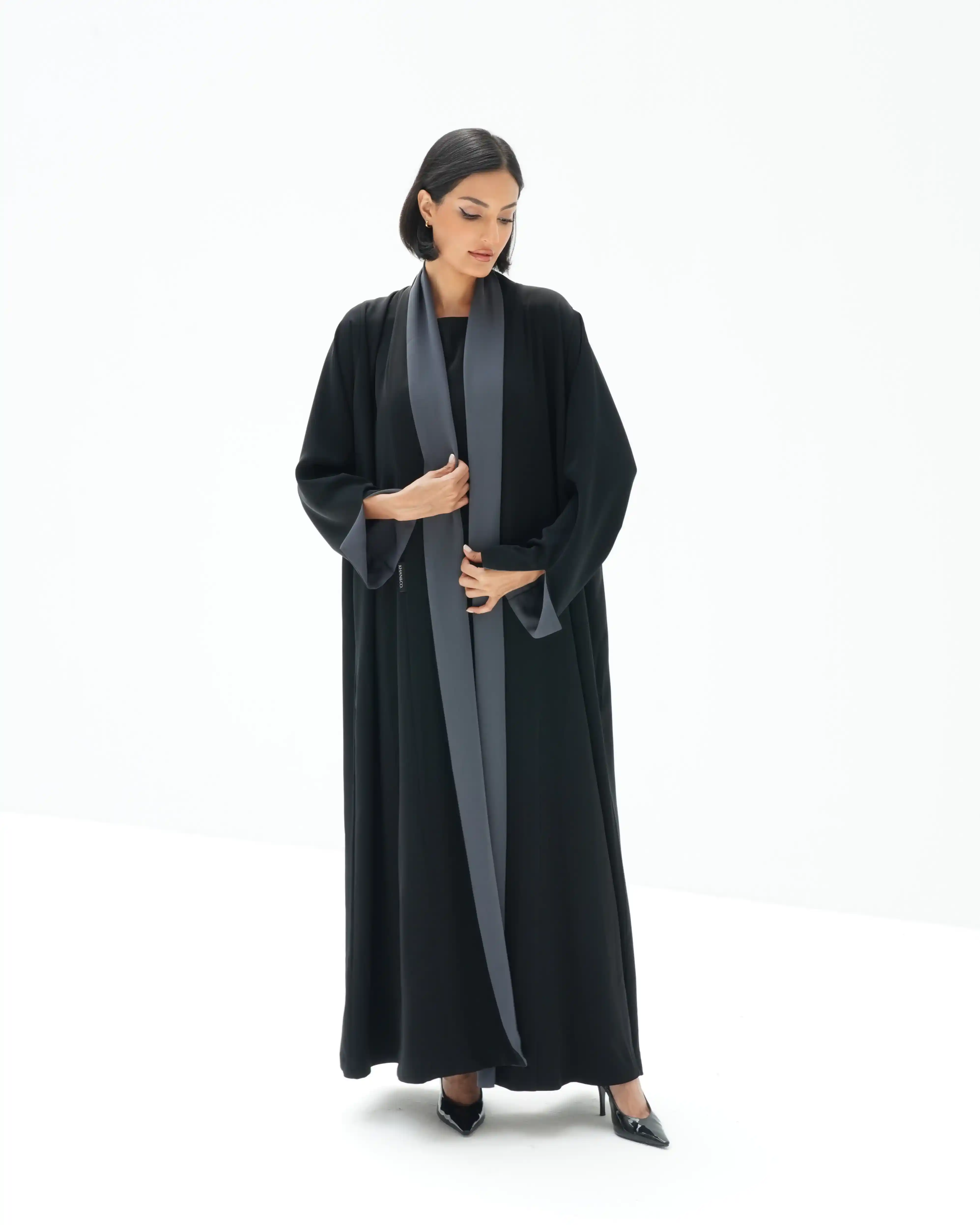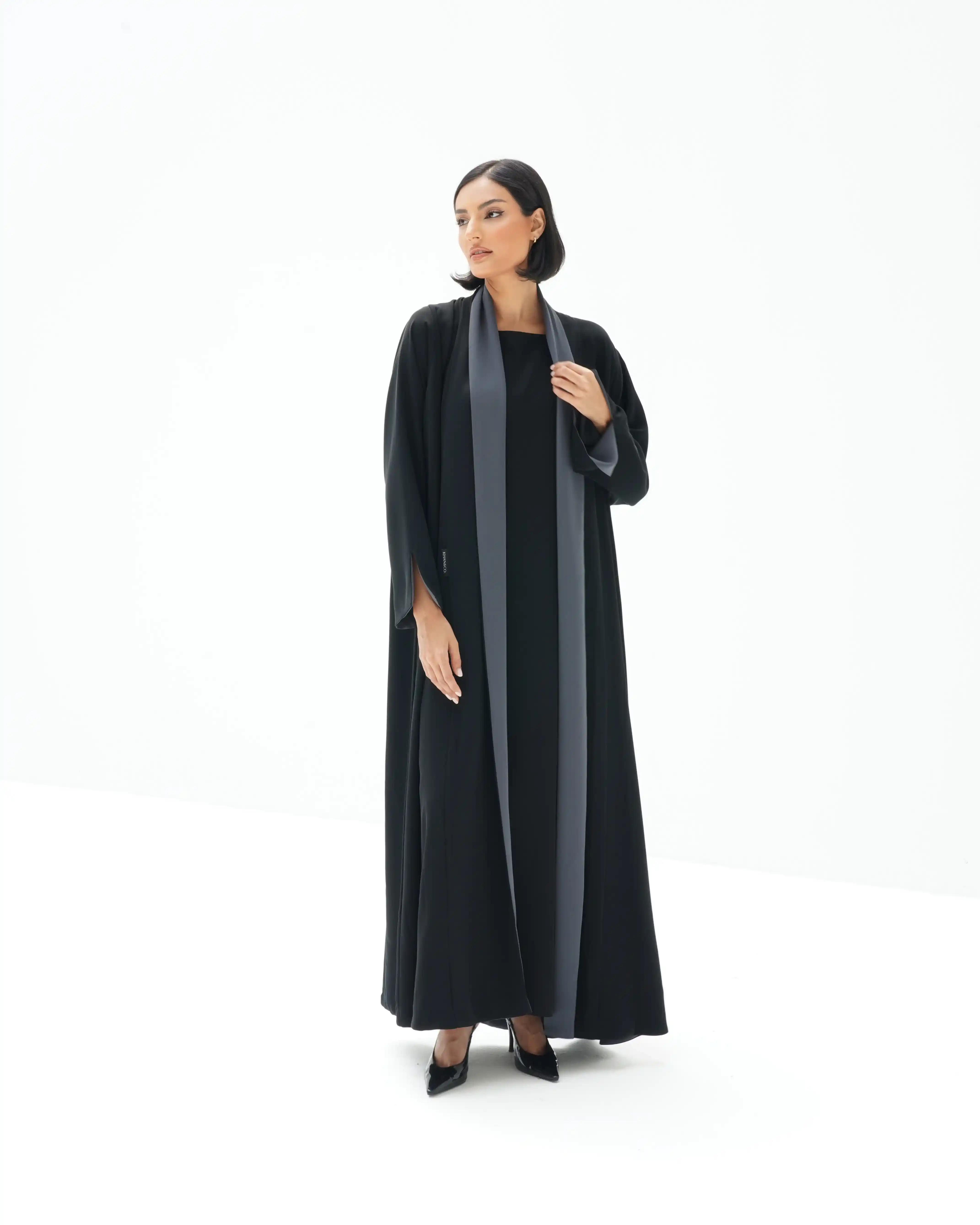 • عباية دبل فيس وجهين وجه باللون الاسود ووجه باللون رمادي