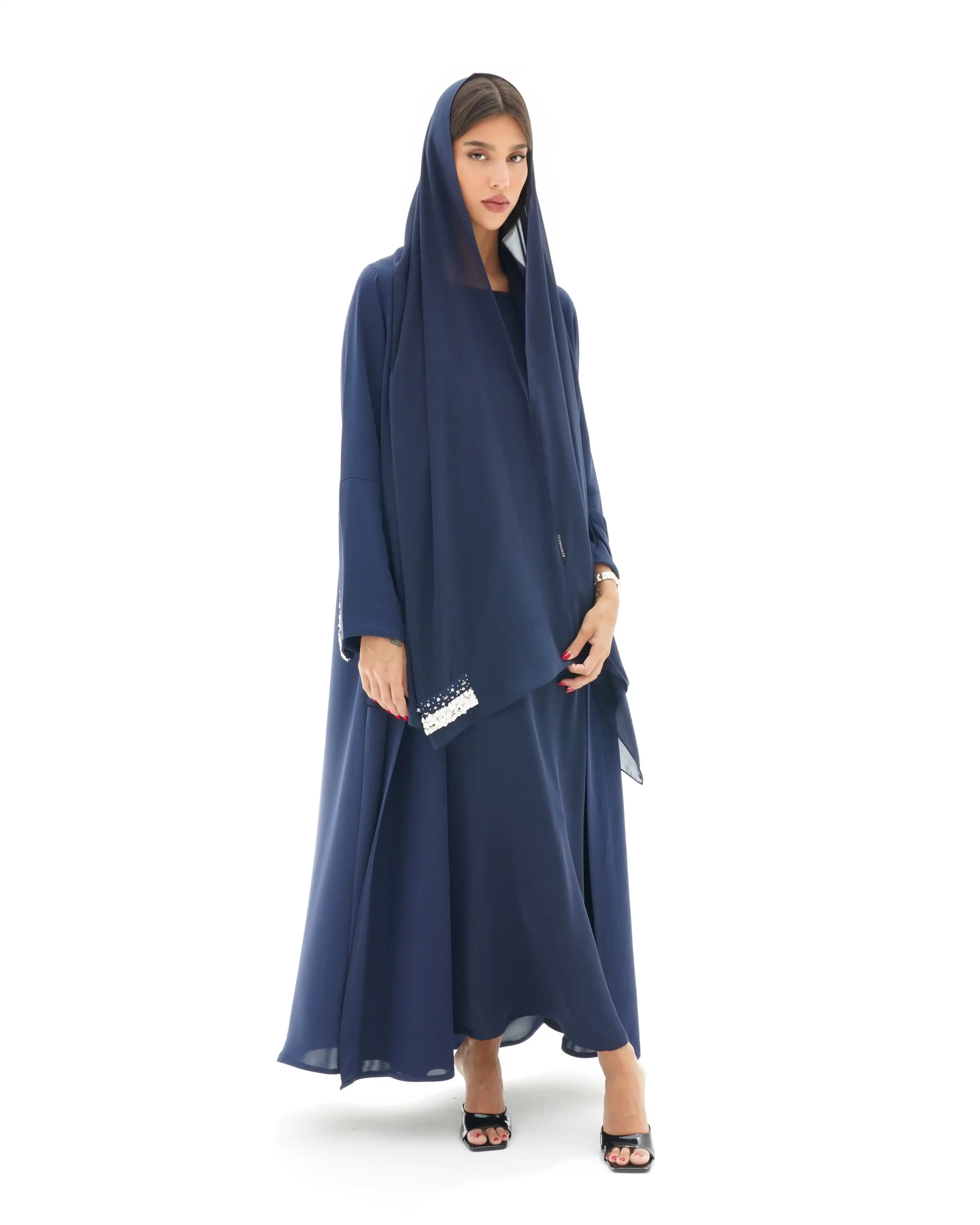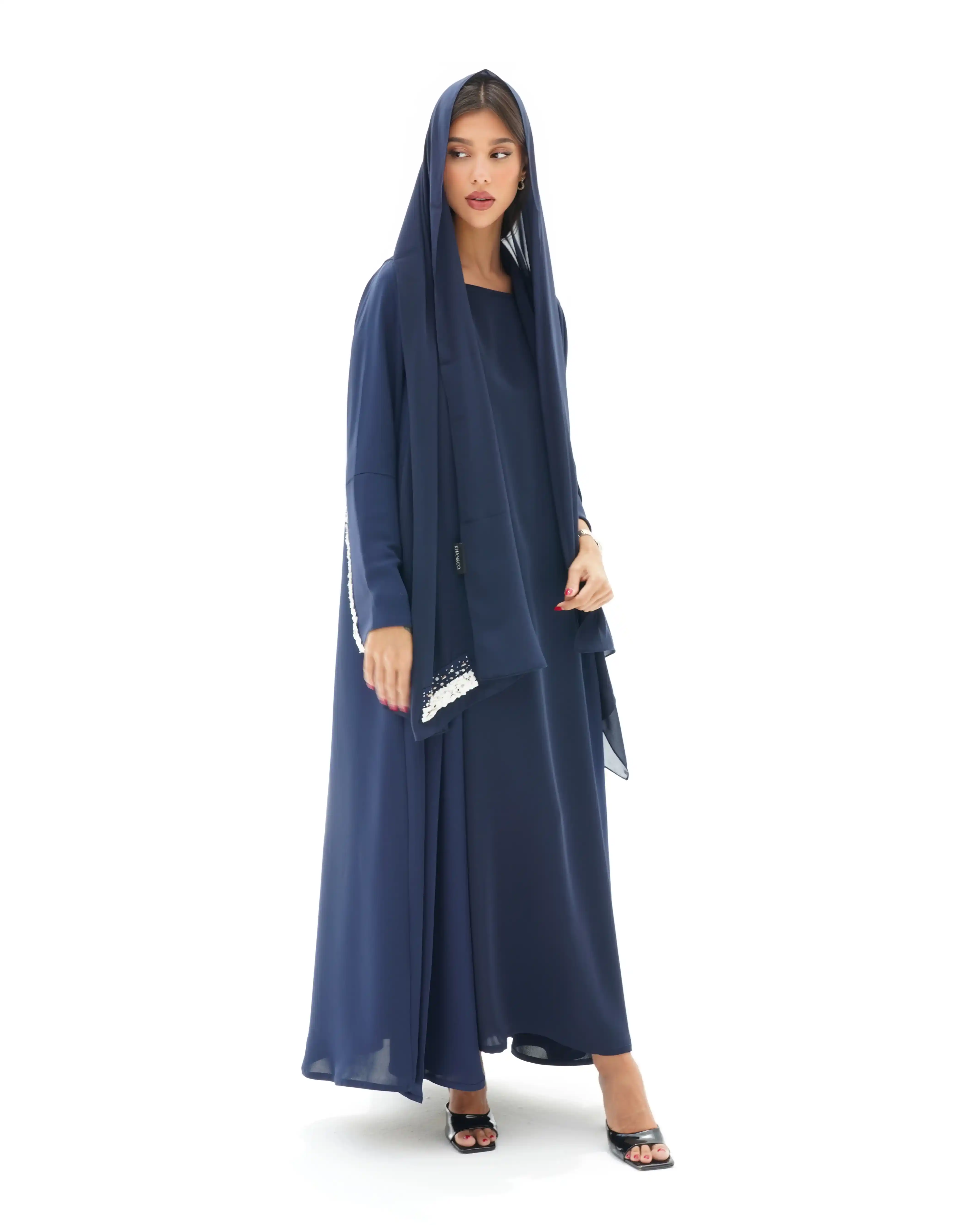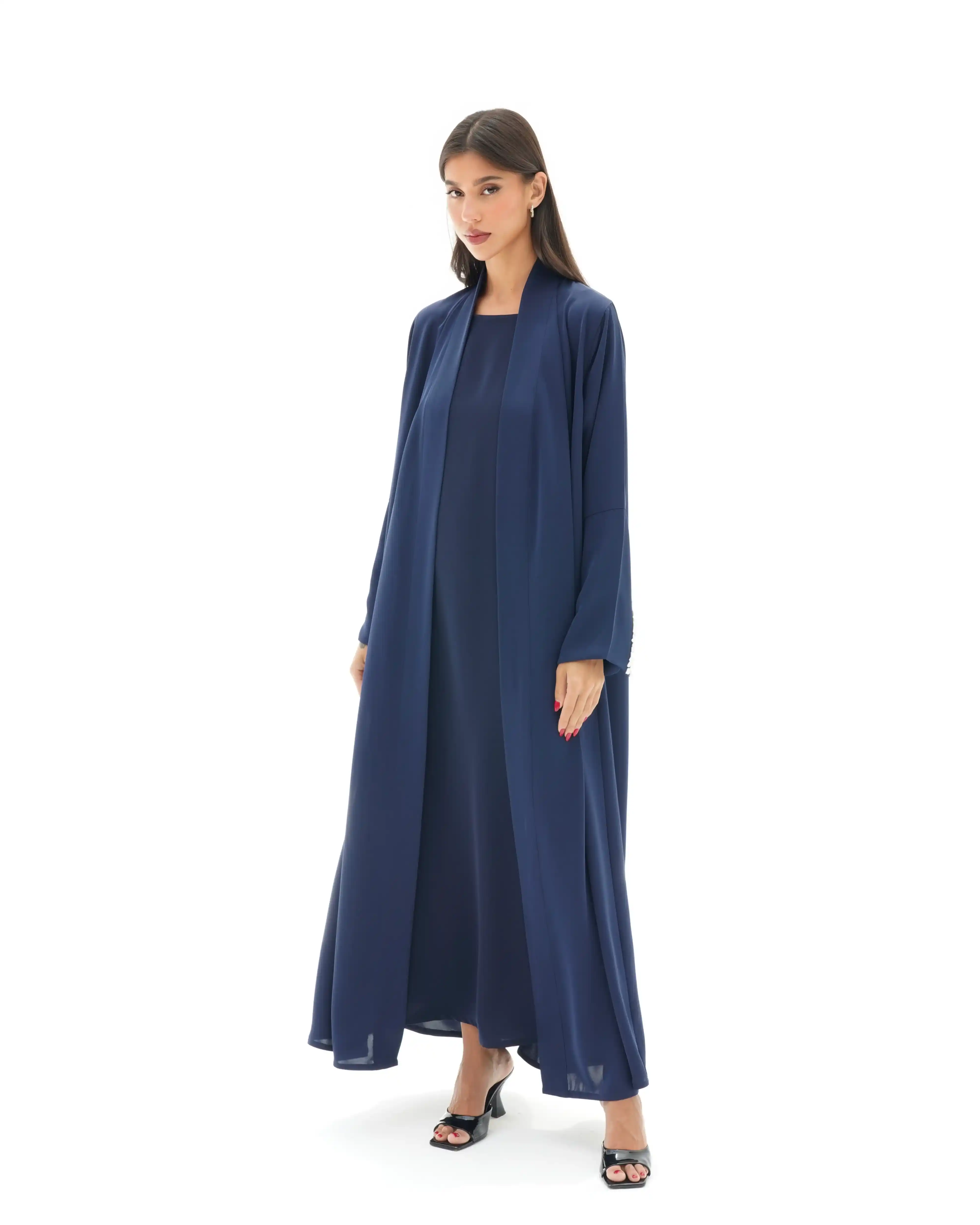 • اللون أزرق كامل قماش العباية.