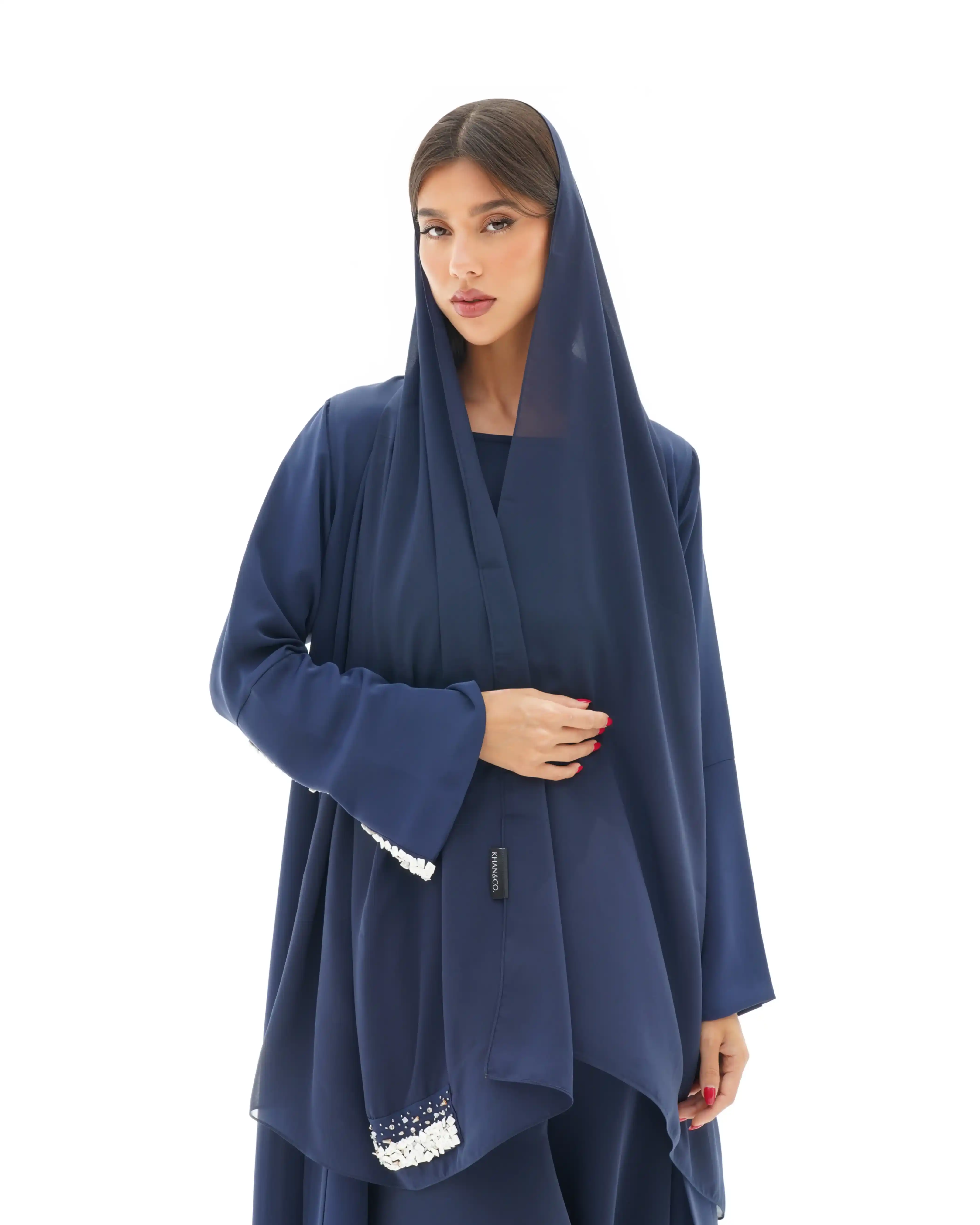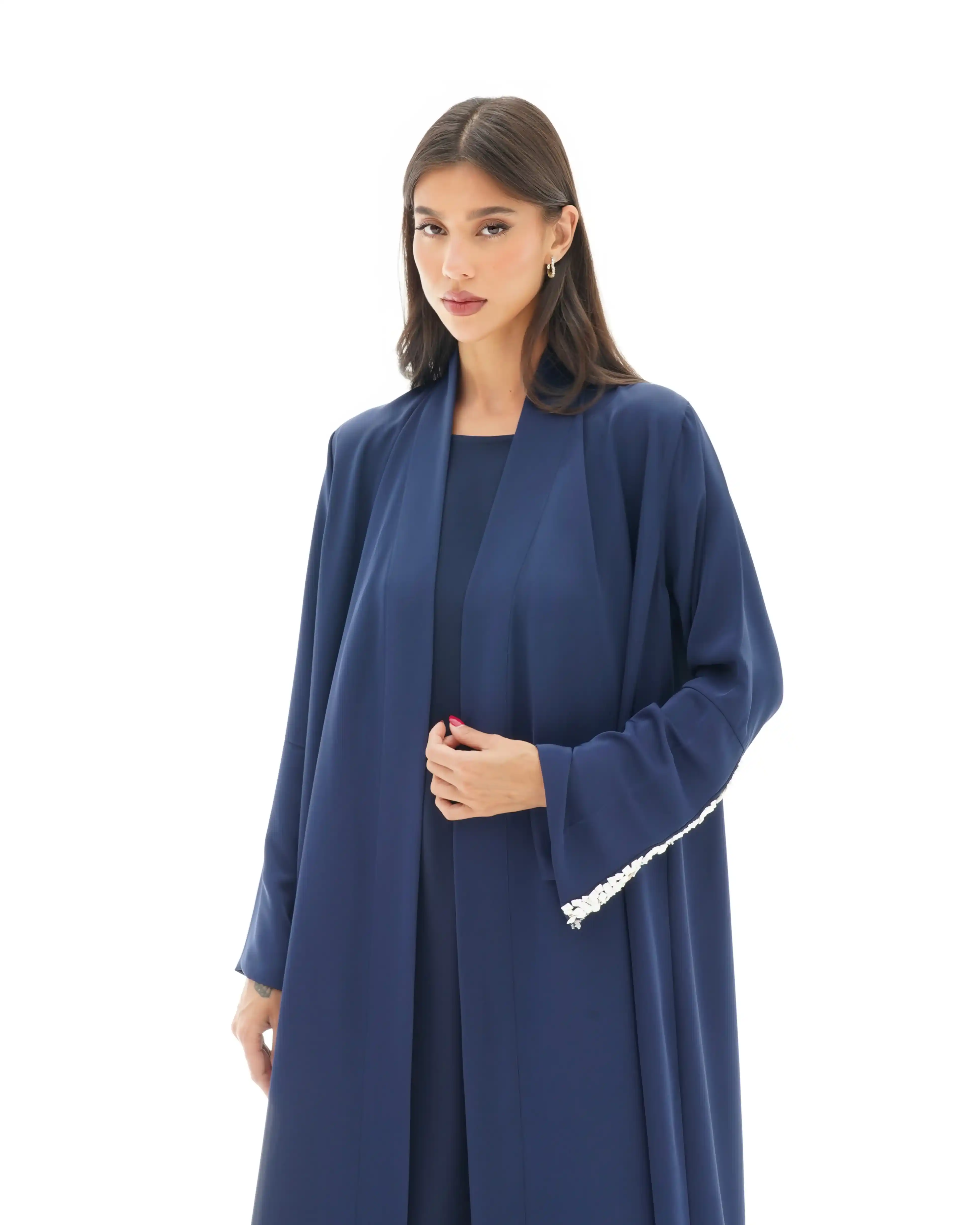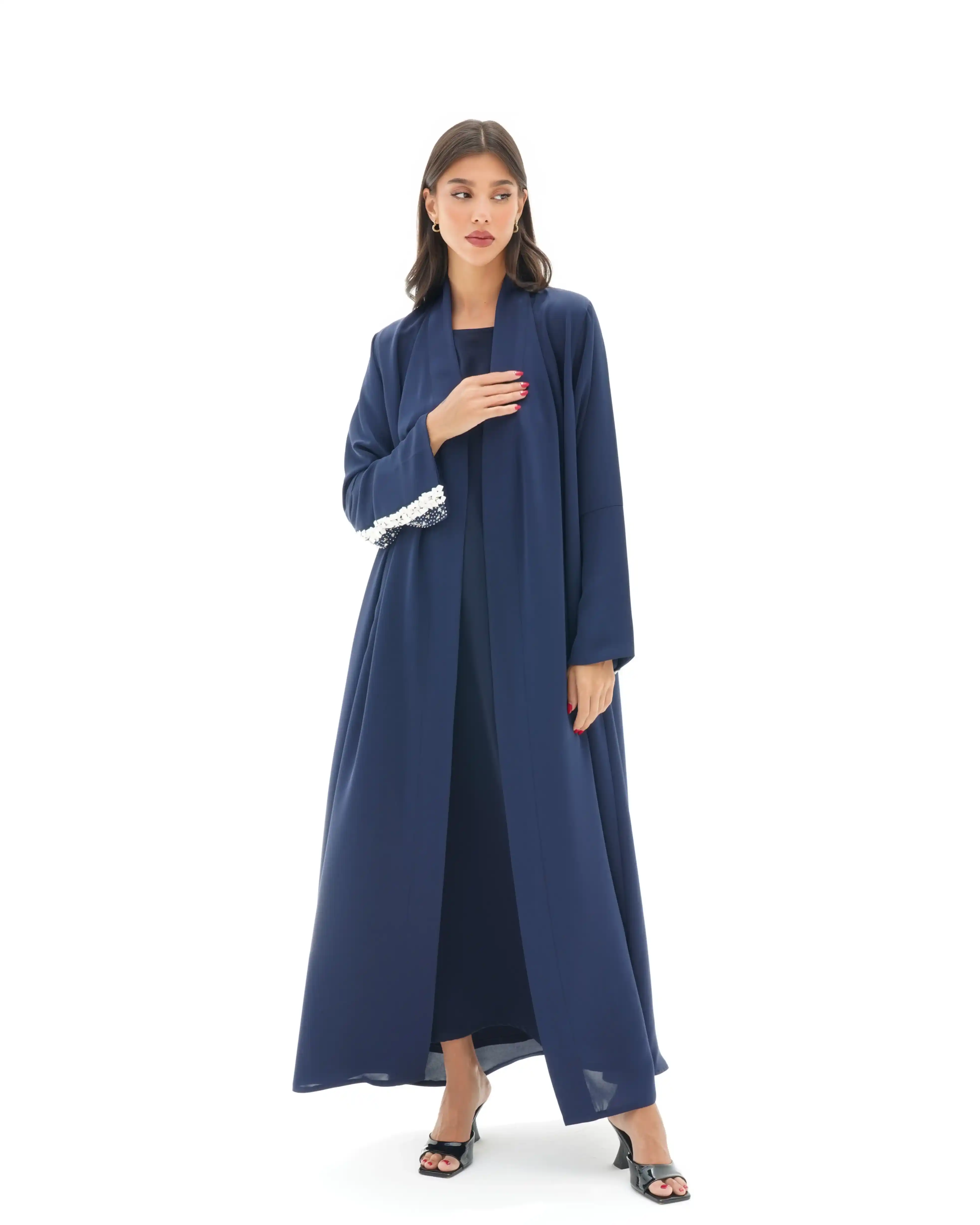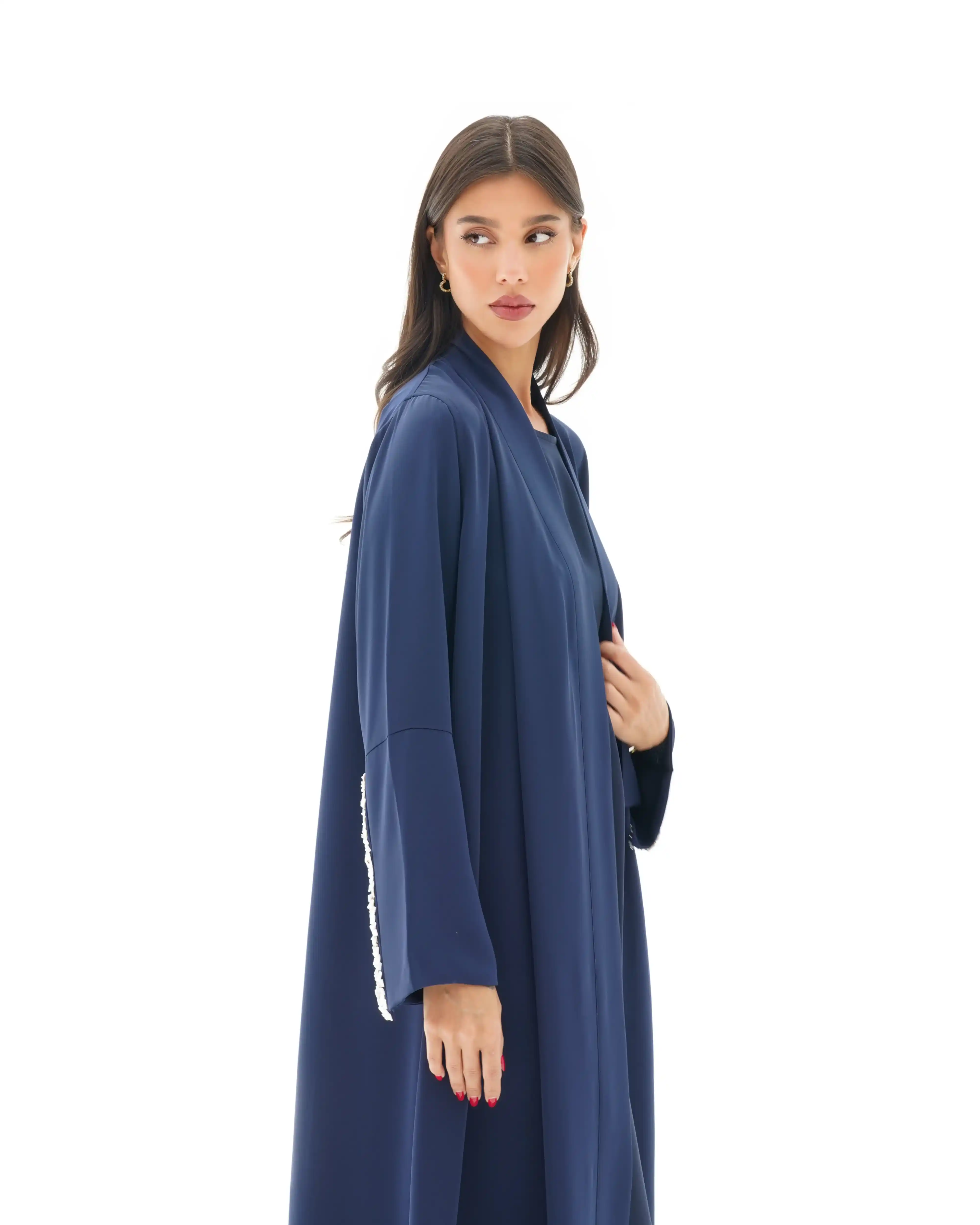 • اللون أزرق كامل قماش العباية.