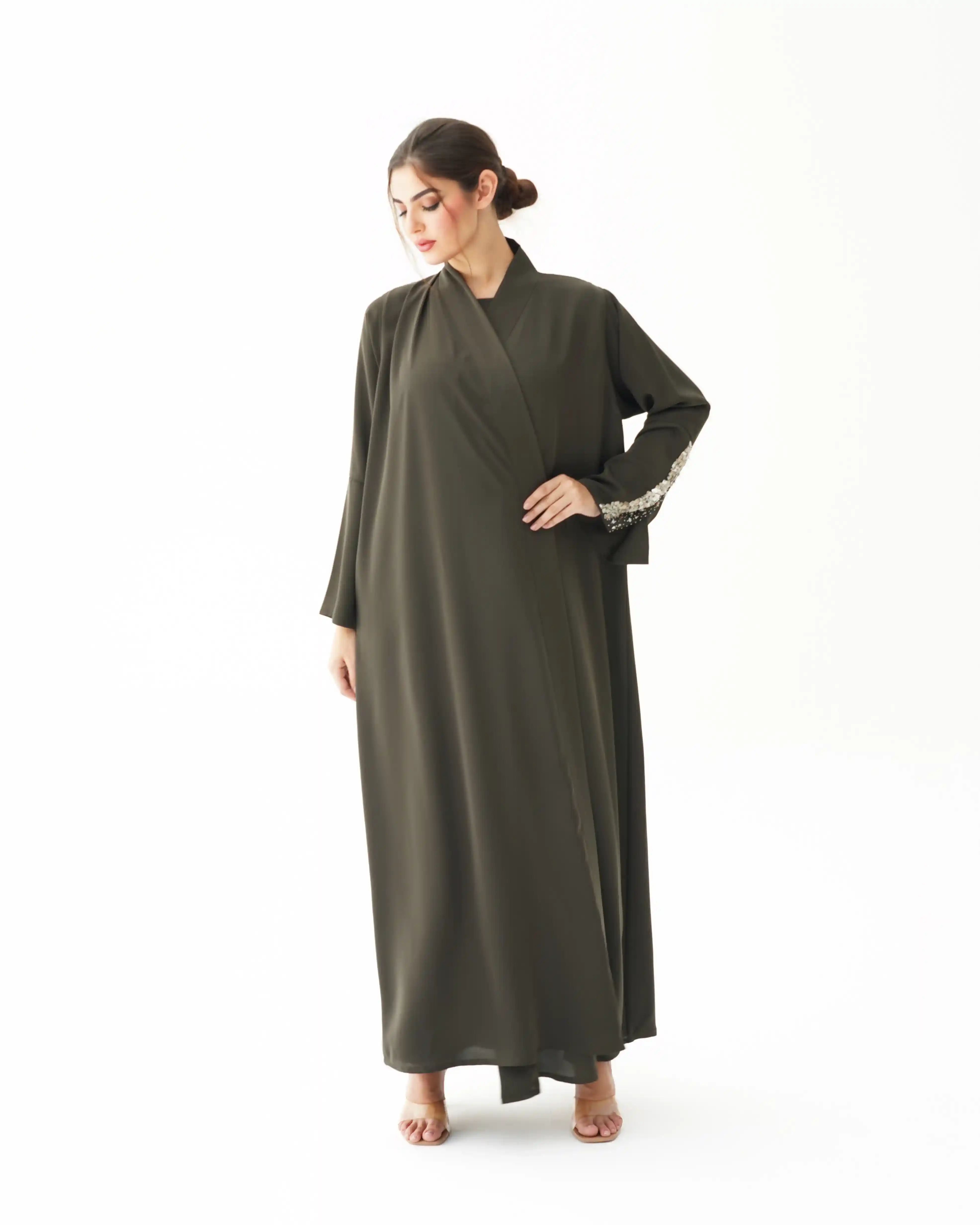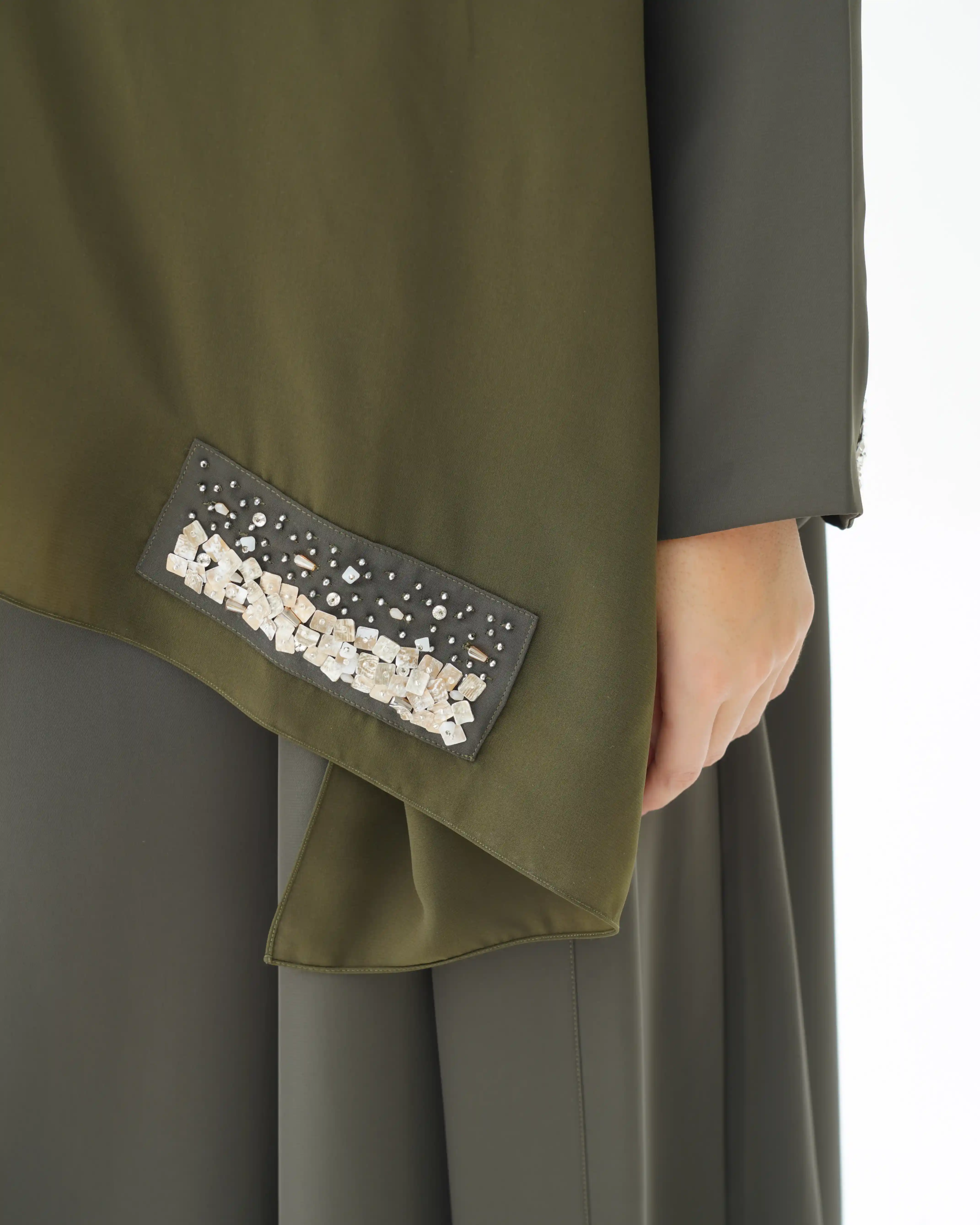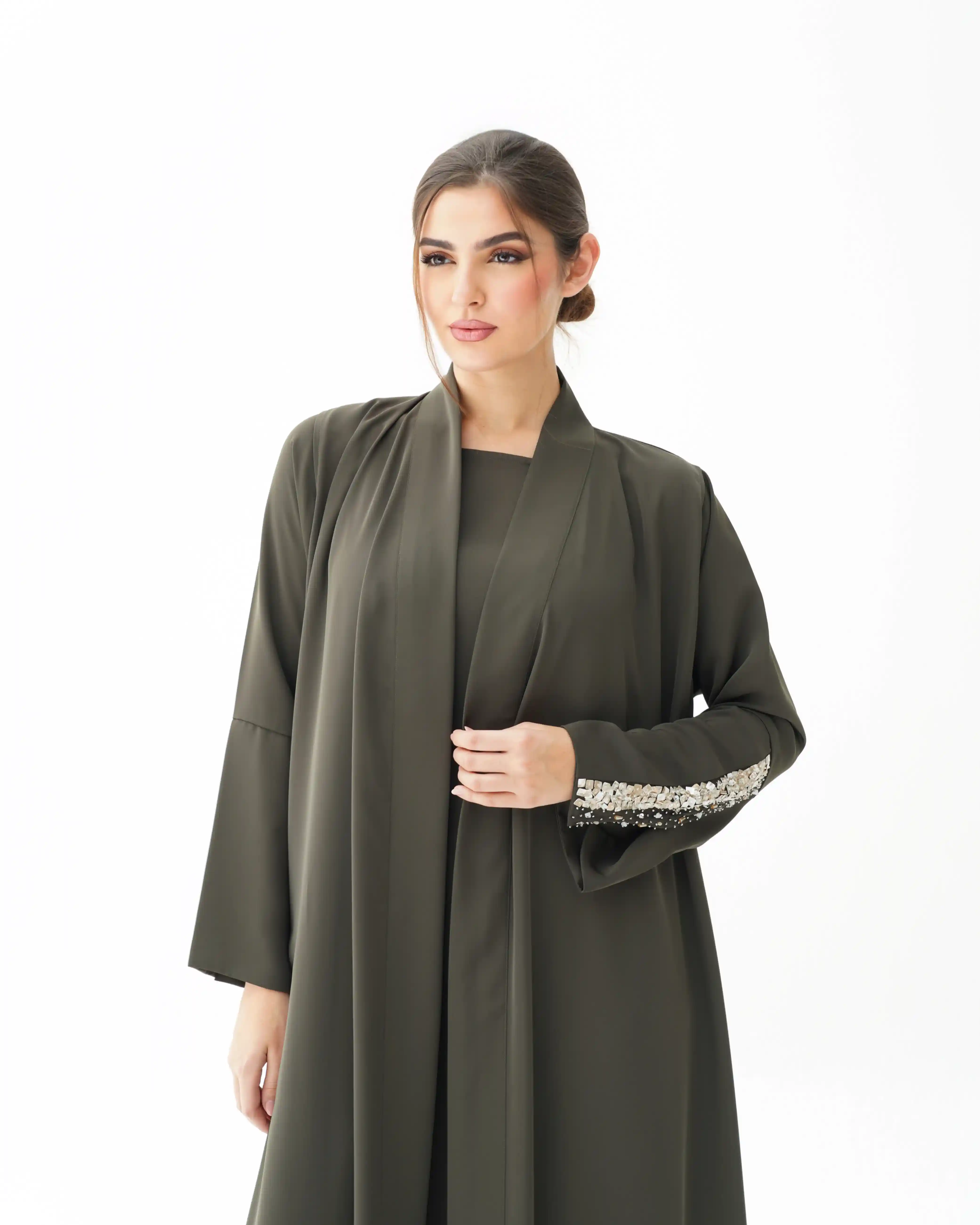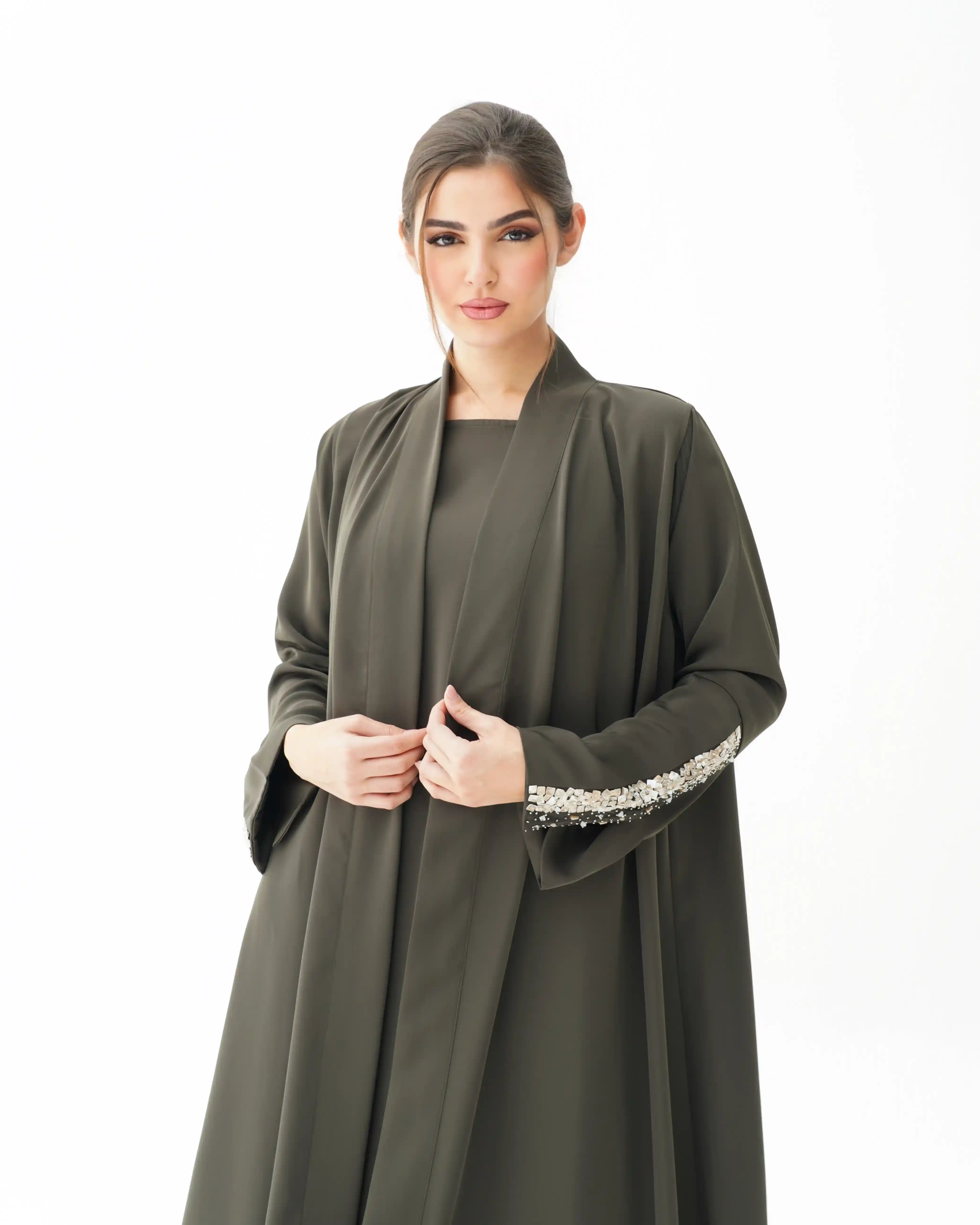 • اللون الزيتوني كامل قماش العباية.