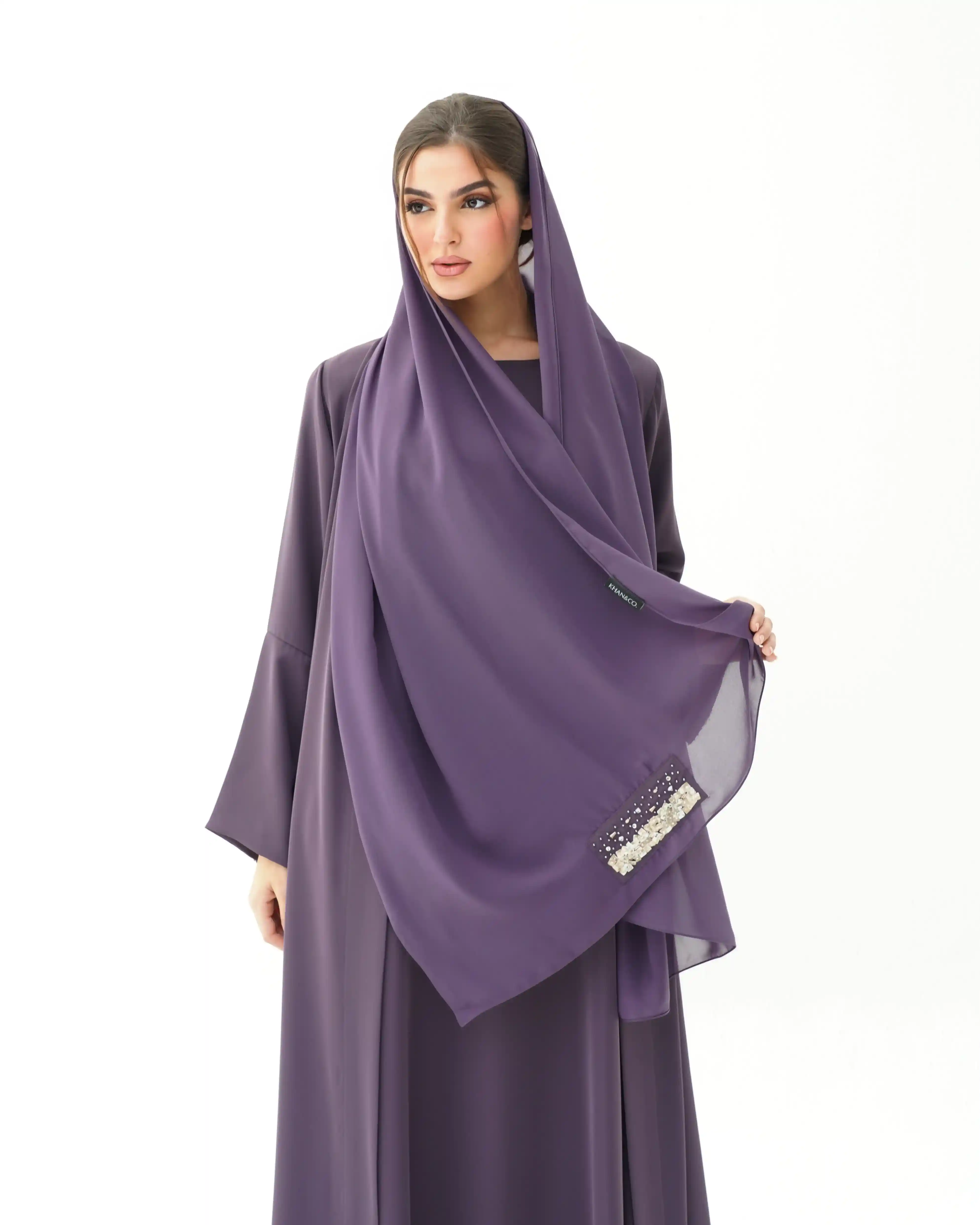 • طرحة مع العباية مطرزة بالسكوين والخزر والكريستال بطرف الطرحة.