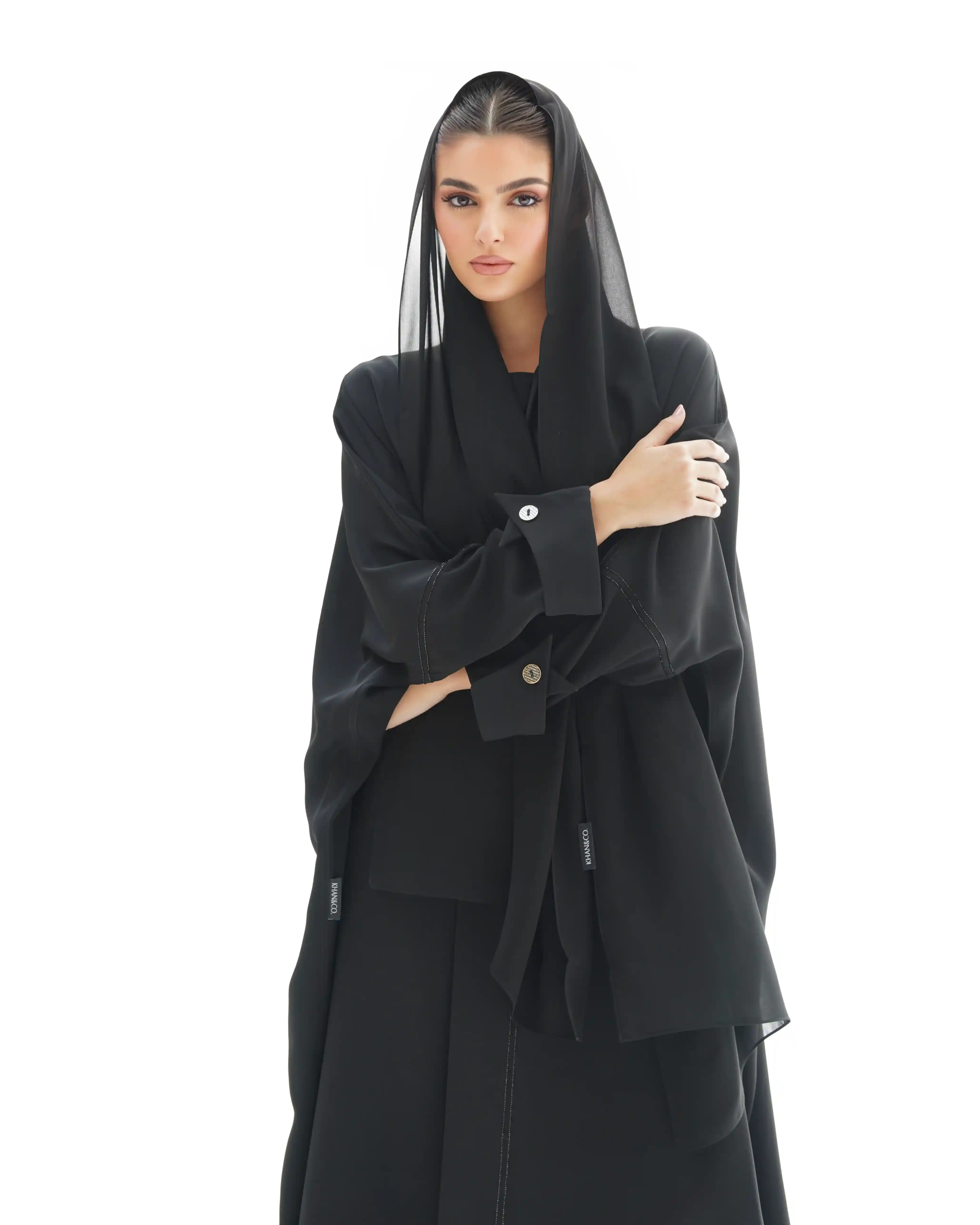 • طرحة مع العباية مقاس 2X62  لون اسود بنفس لون العباية .