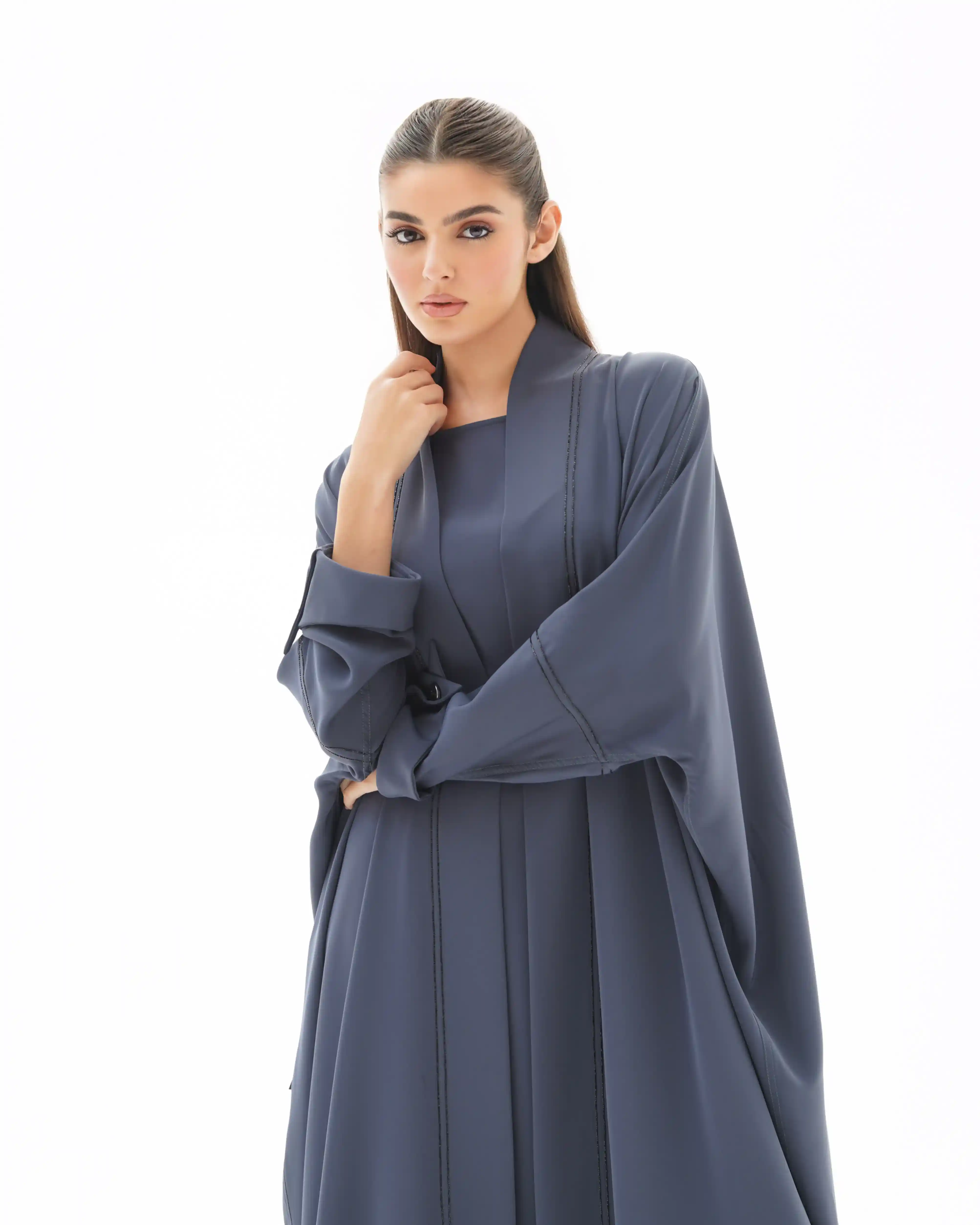 تضيف التفاصيل الأنيقة لمسة عصرية جذابة إلى هذه العباية المصنوعة من قماش الكريب الخفيف والمنسدل مما يمنحها إطلالة مفضلة كلاسيكية ،اكتملت بخطوط دقيقة وناعمة من الخرز الاسود اللامع تبدأ من خلف شريط الرقبة إلى اسفل ذيل العباية وتزدان الأكمام بقلبة قماش وقصة مستوحاة من كلاسيكيات الازياء الفرنسية وبإزرار بعلامة .KHAN&CO الايقونية مثبته بحبات من الخرز الاسود.