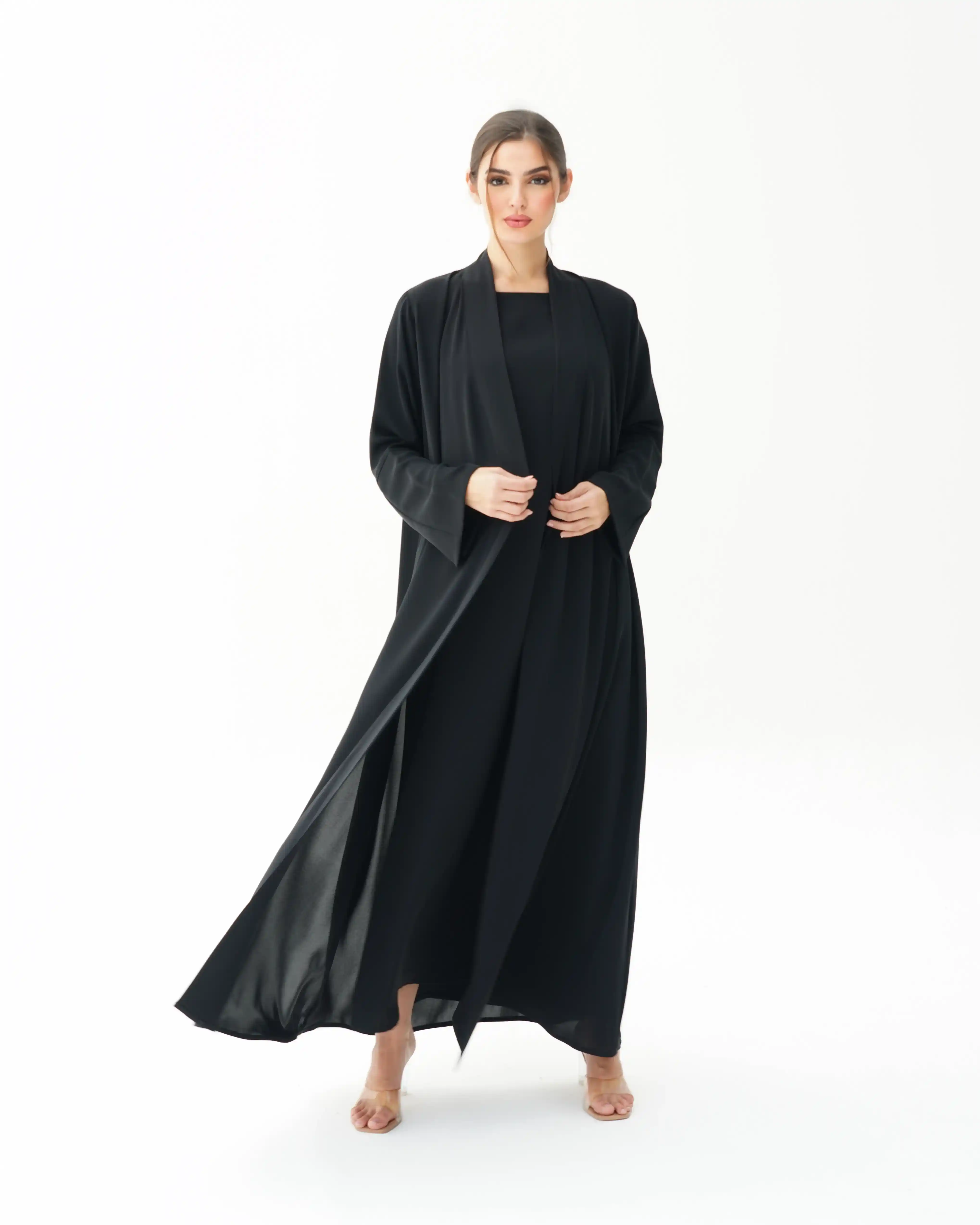• قطعة فستان داخلية منفصلة بمقاس اقصر من طول العباية واصغر بقليل عند الصدر.