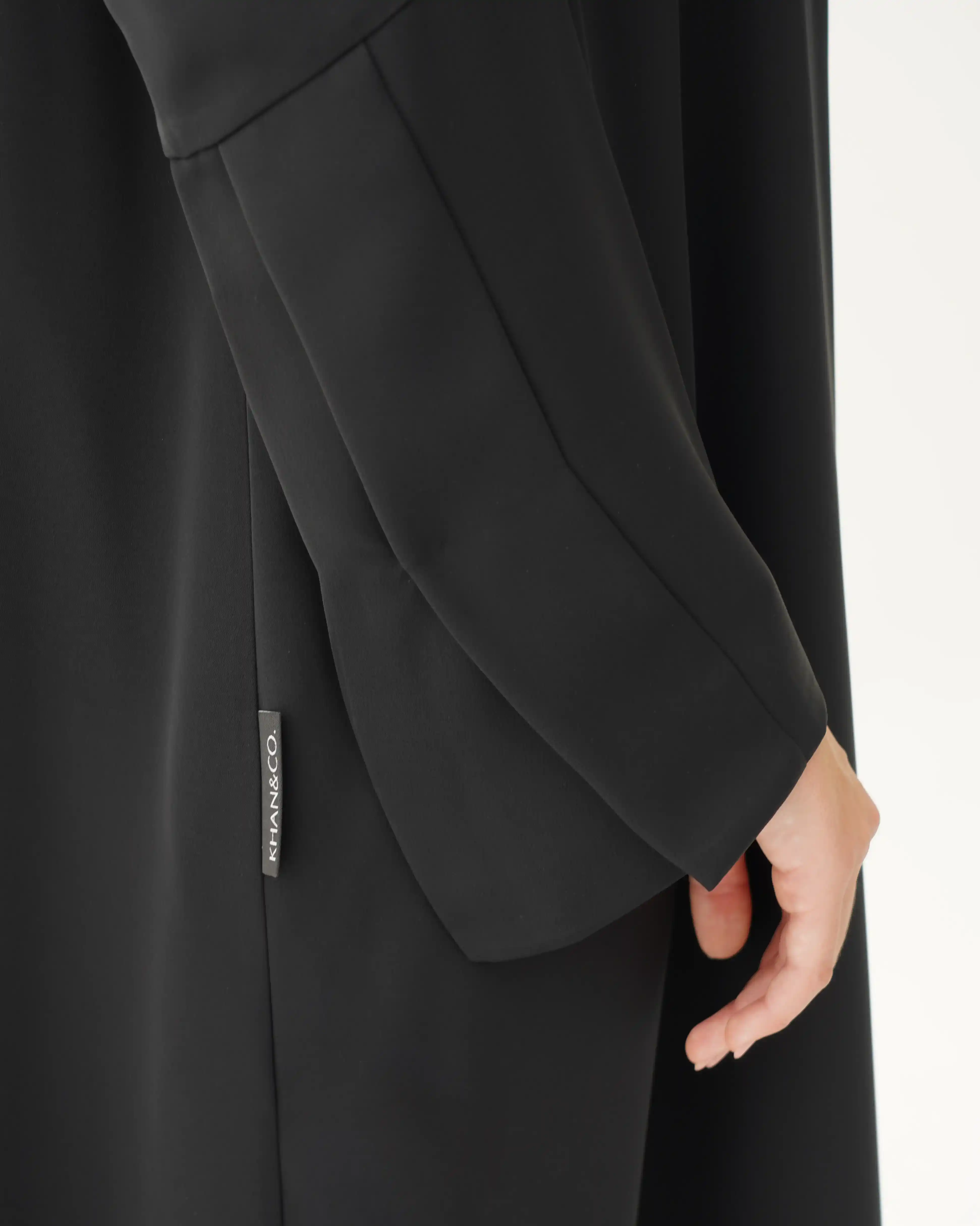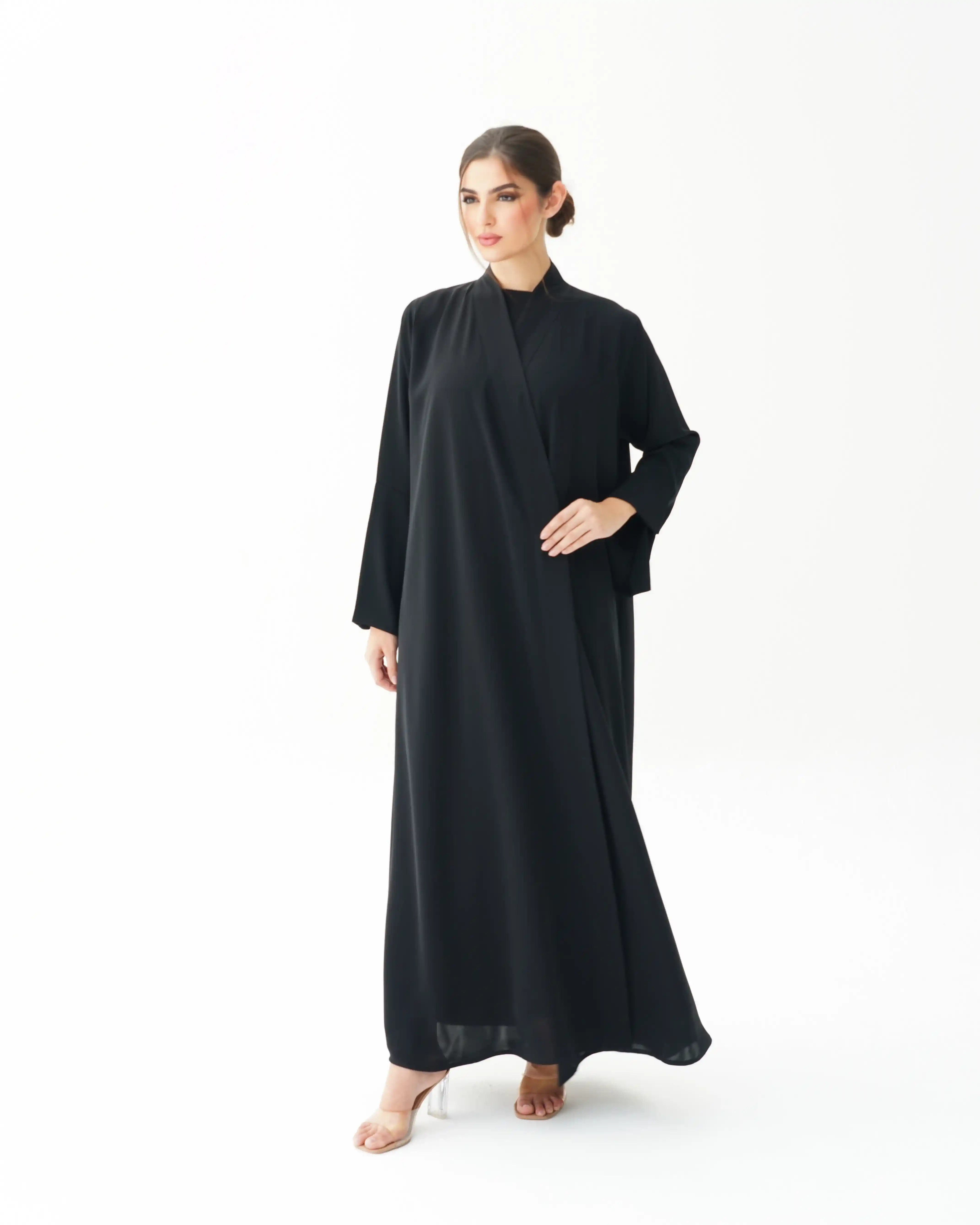 اطلالة انيقة بدون عناء لوجود قطعة فستان داخلي معها، فهذه العباية بالقصة اللف المبتكرة تأتي بنمط متداخل على شكل حرف x تلتف من خلف الرقبة بشريط لياقة الى اخر ذيل العباية, اهتمامنا بالتفاصيل الدقيقة التي من خلالها اكتسبت العلامة شهرتها الواسعة في المملكة العربية السعودية كما تتميز العباية بقماش خفيف الوزن منسدل يضفي الانسيابية المطلوبة للتصميم. ويمكن ارتداؤها مفتوحة مع الفستان الداخلي او بطريقة اللف.