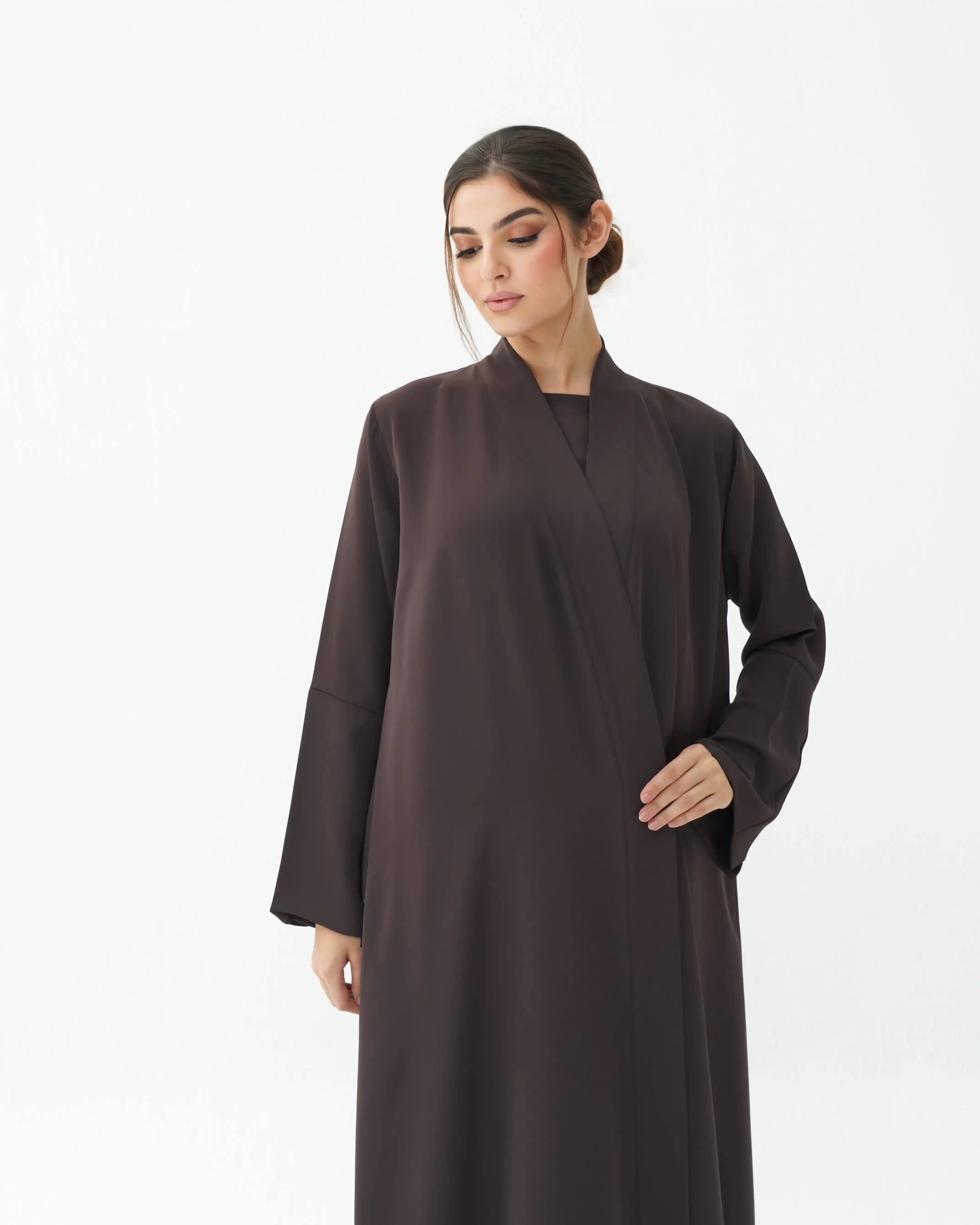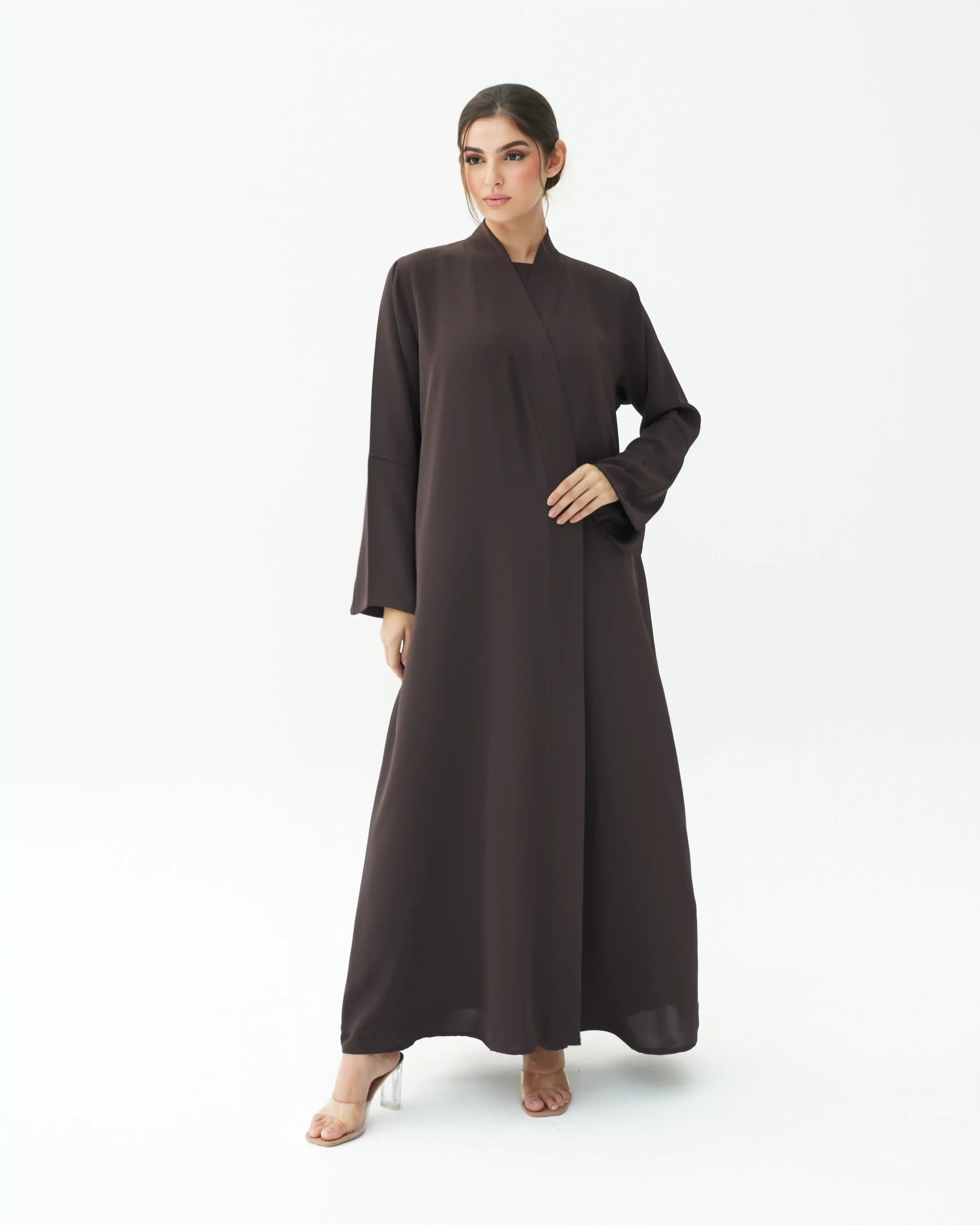 • اللون شوكولاته كامل قماش العباية.