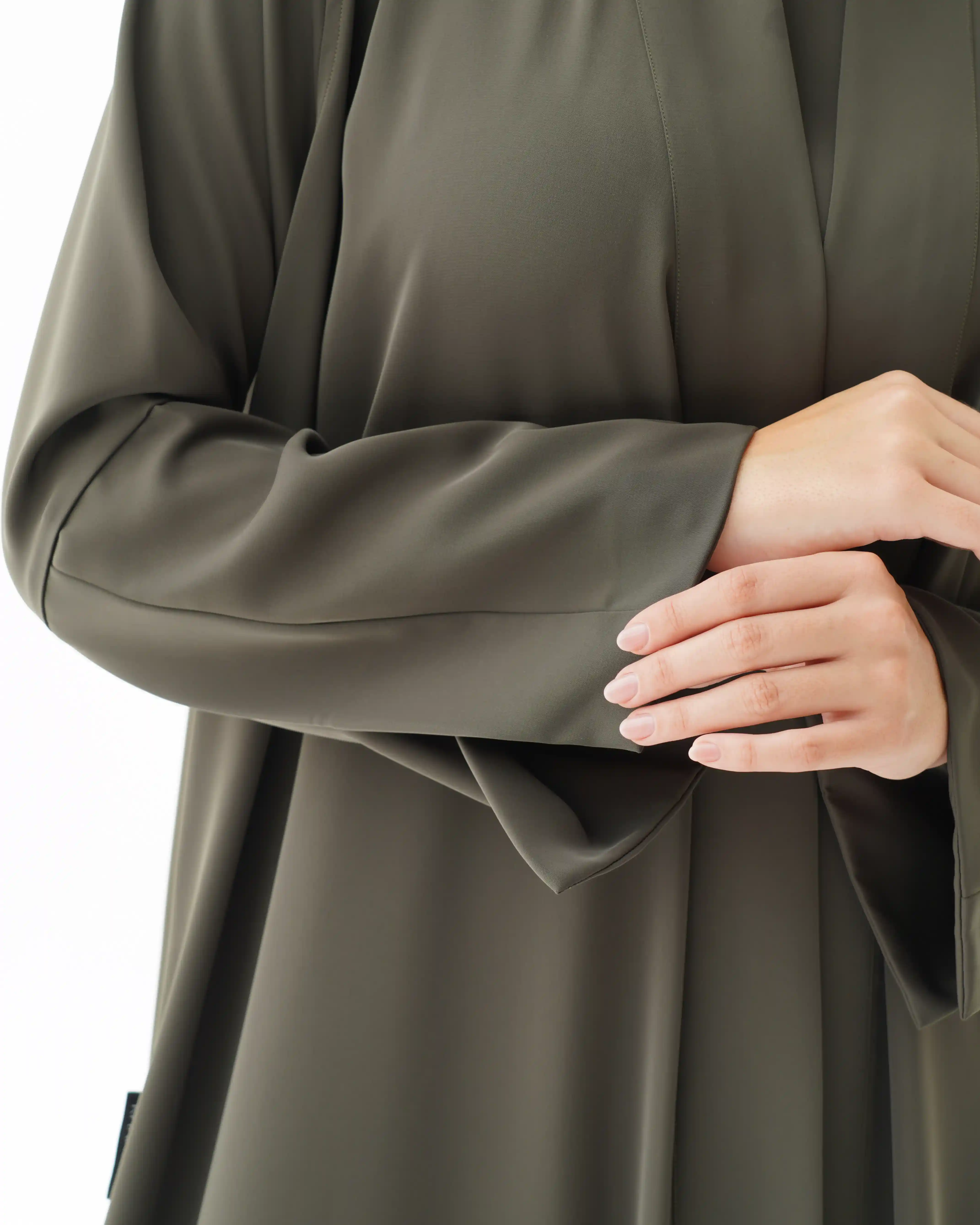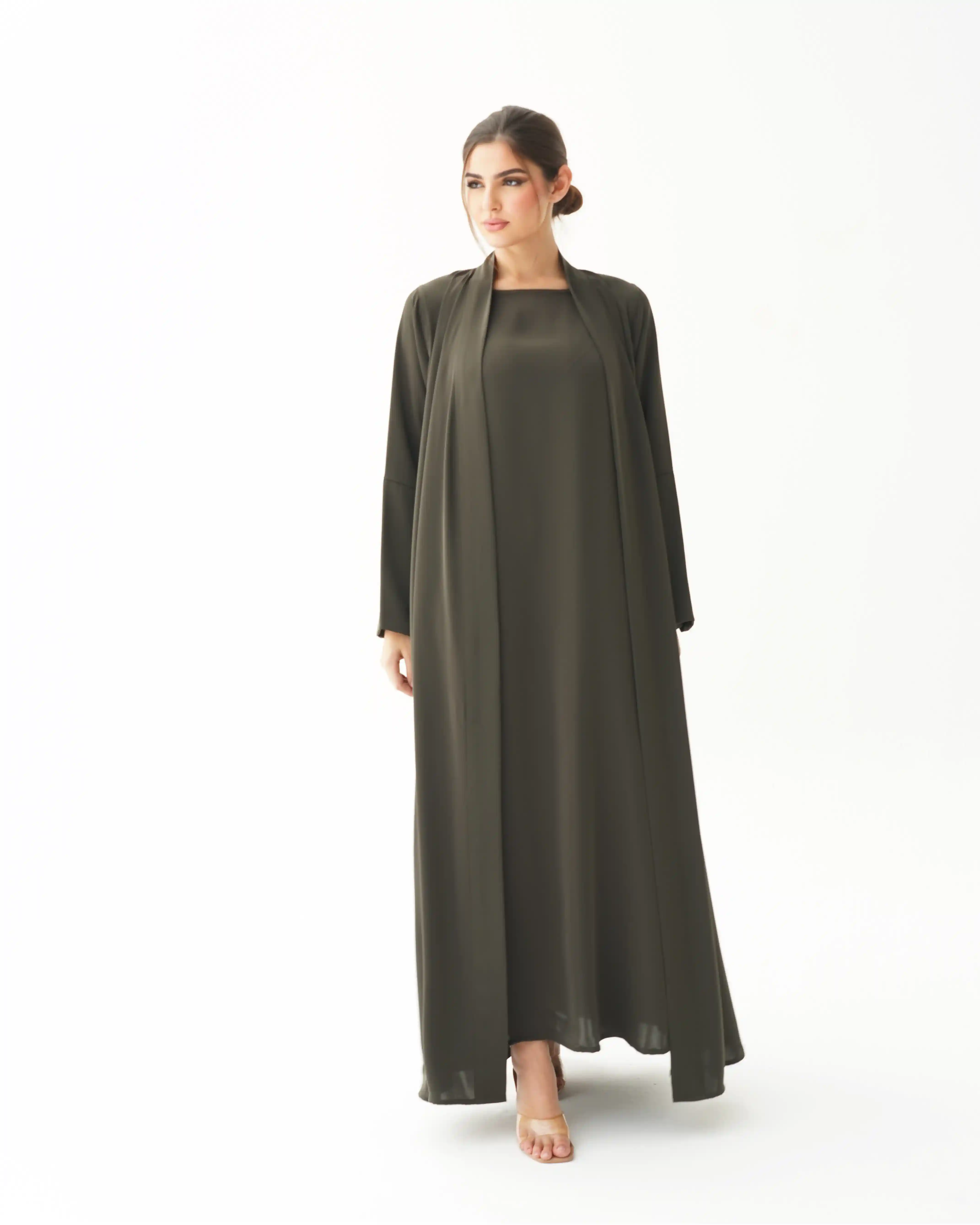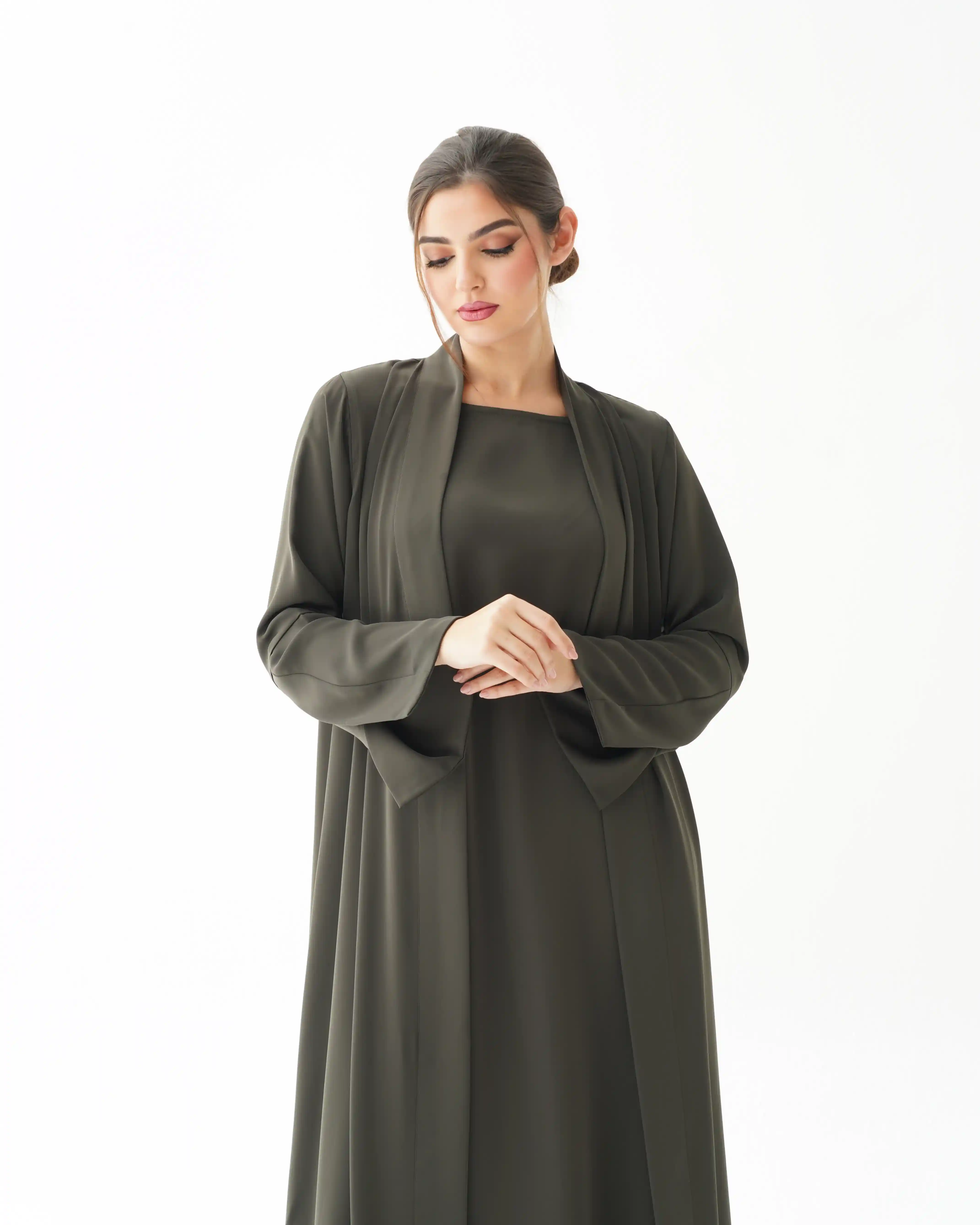 • اللون الزيتوني كامل قماش العباية.