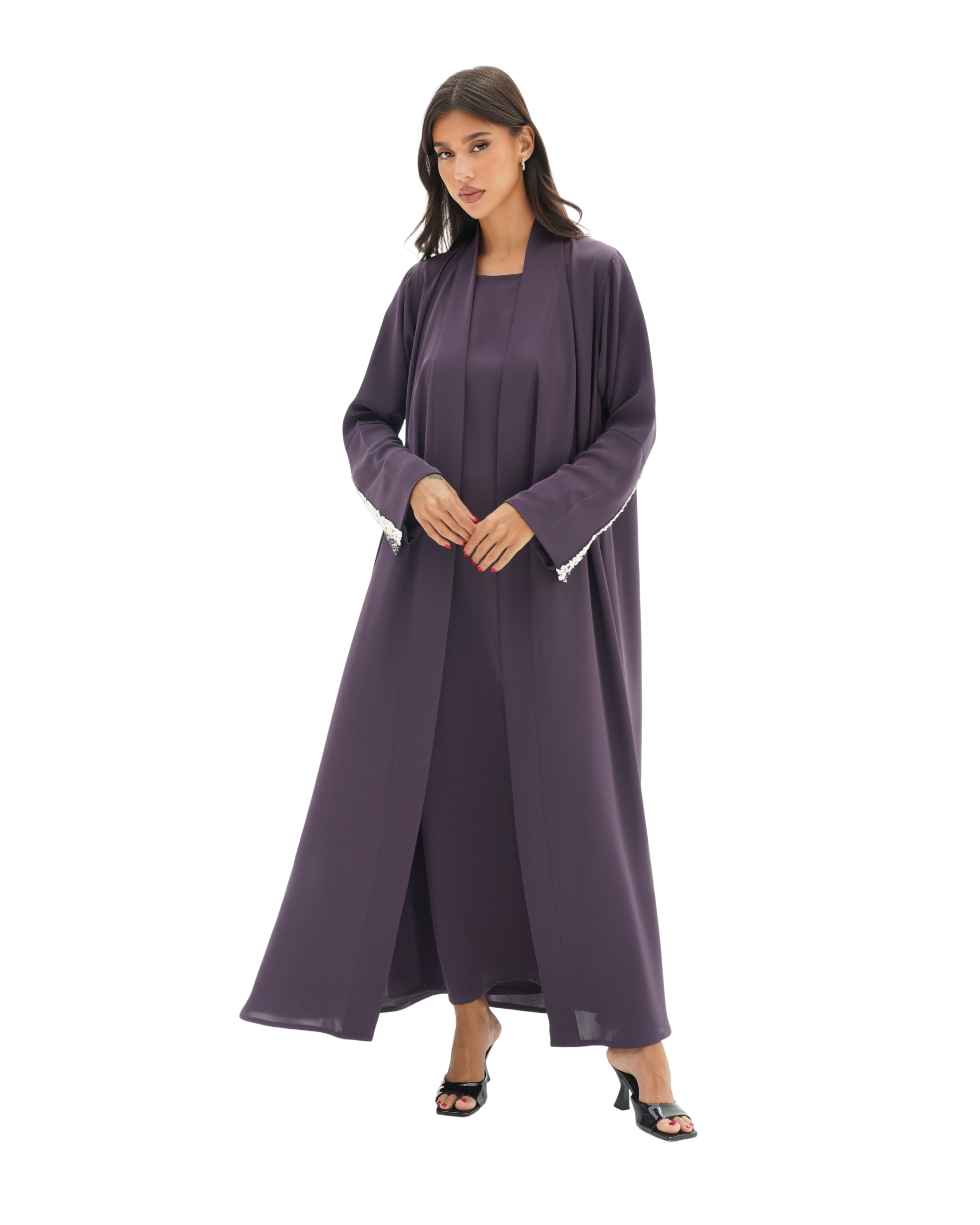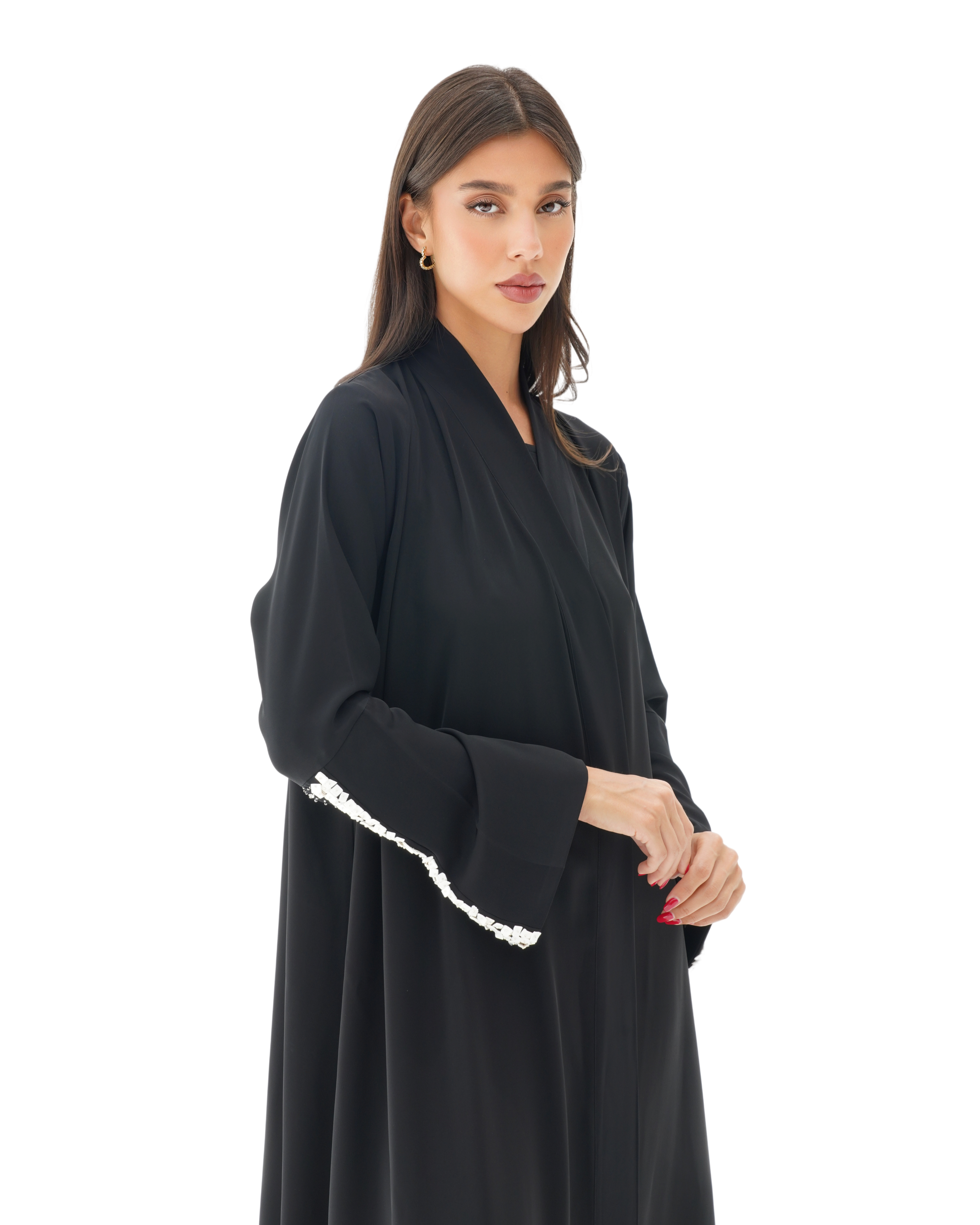 قماش البريميوم كريب بقصة ياقة مبتكرة مشتغلة يدويا بالخرز